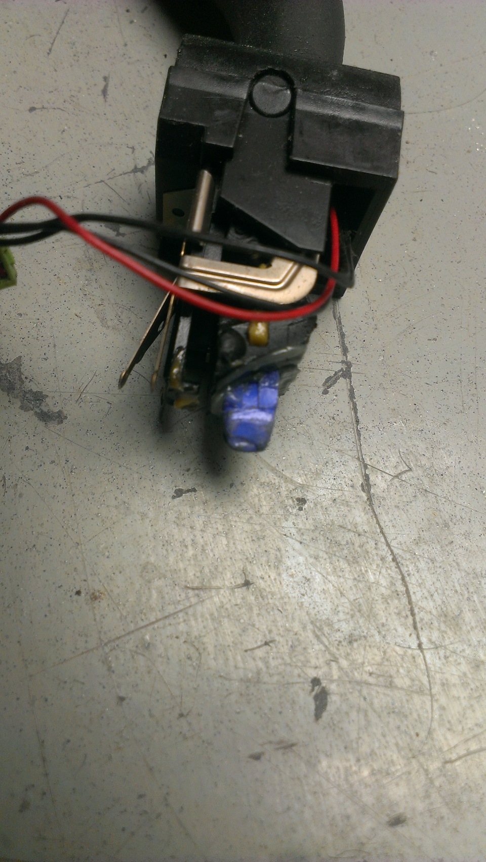 Со стороны где пружинка вставляется отрезаем пару миллиметров пластмаски фиксатора, и напаиваем паяльником с рабочей изношенной стороны. Делаем это чтобы пластик был однородный и точно хорошо припоялся) Обрабатываем припой наждачкой, смазываем литолом и вставляем обратно в ручку.