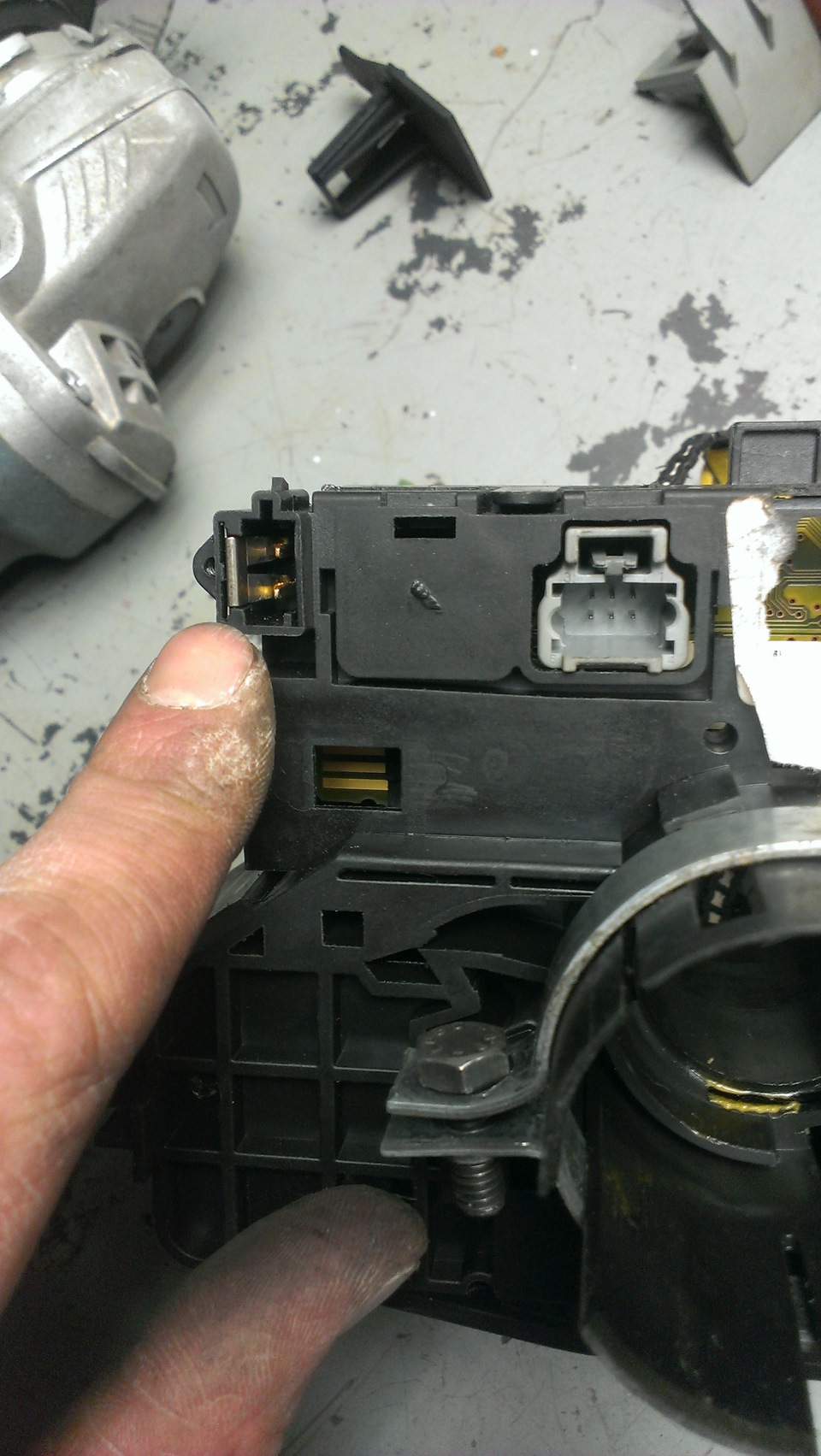 так это выглядит. Собираем все в обратной последовательности. Обращайте внимание как стоят контакты в боковом разъеме с обеих сторон. Их при сборке нужно заправлять отверткой за торчащие контакты. Иначе потом не поставите фишку от проводки когда будете ставить на машину.