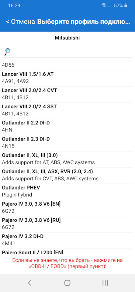 Приложение быстро настроил и пошёл диагностировать свой Лансер.