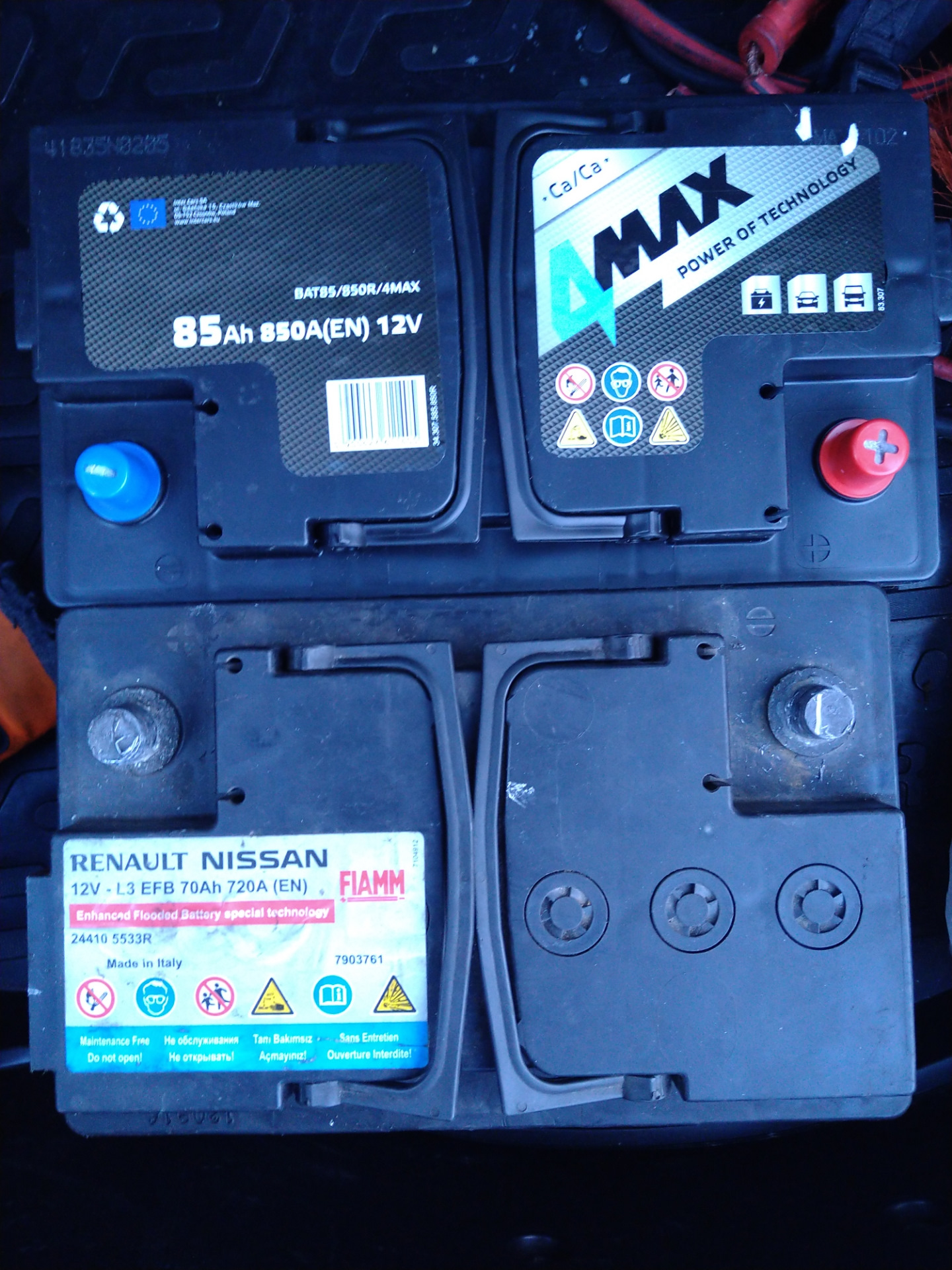 Решил я заменить акум, так как в -20 старая батарея отправила меня пешком . После прикурили, завелась но колбасило её так что мама не горюй, в сиденье как будто кувалдой долбили, с полным прогревом в течении часа биения ушли . На следущее утро сама завелась и ничего подобного не было из вибраций . Оперативно был заказан новый с размерами 315x175x175 . Естественно искал что влезет максимально мощное . Им оказался 4max 85a/ч 850а EN 800 . Крутит бодрей в разы чем было . Из за высоты акумы, крепление не держит его, но это всё мелочи, всё решается, пока оставил так . На работе чем нибудь зафиксирую.