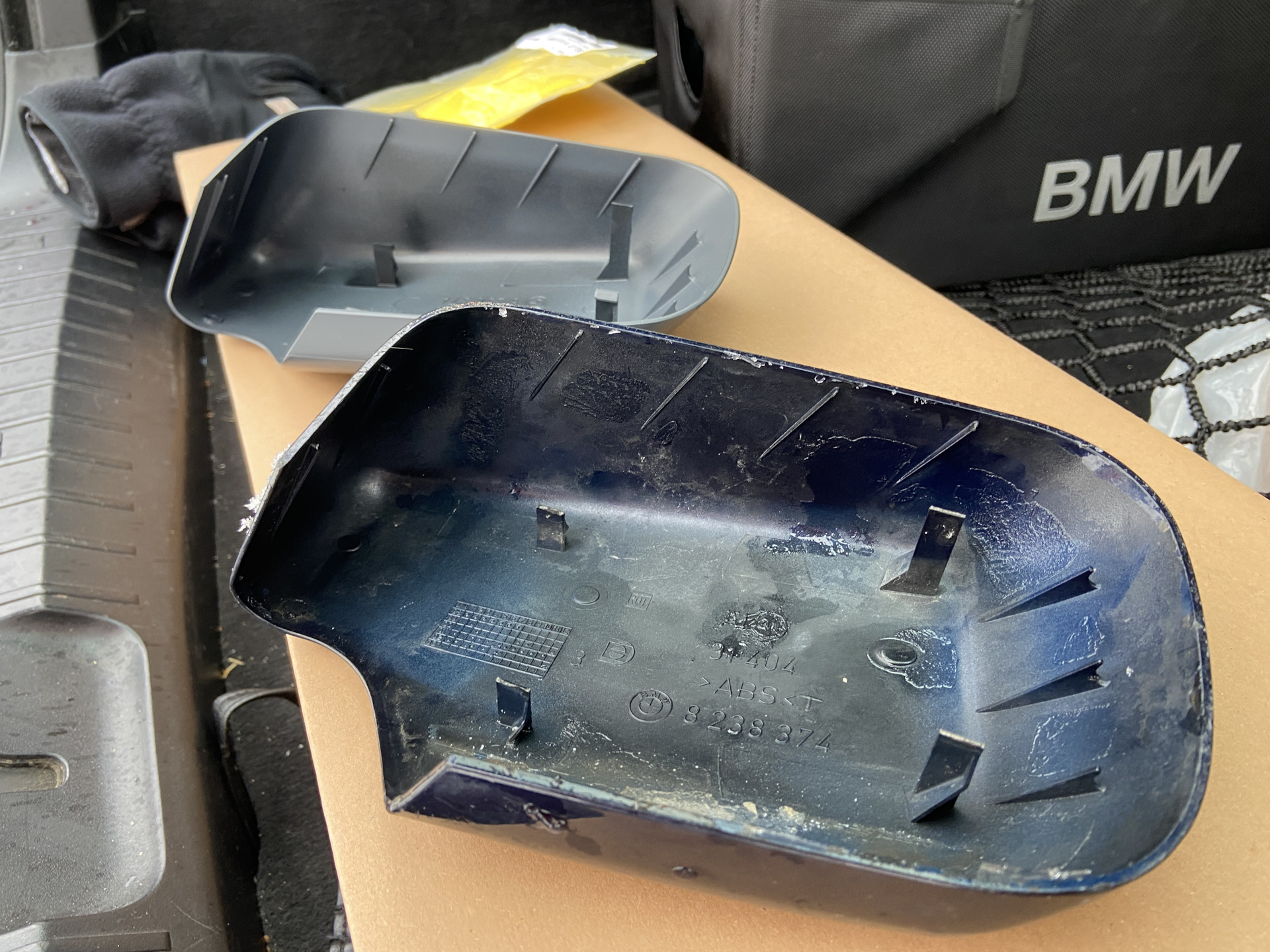 Автомобиль еще от прошлых хозяев достался мне с любопытной "фичей" — сломанное крепление пластикового корпуса правого зеркала заднего вида. Проявлялось в основном на мойке — при попытке сделать чистым стеклянный элемент зеркала — улетал в неизвестном направлении. Куплен новый в грунте, скоро покрасим.