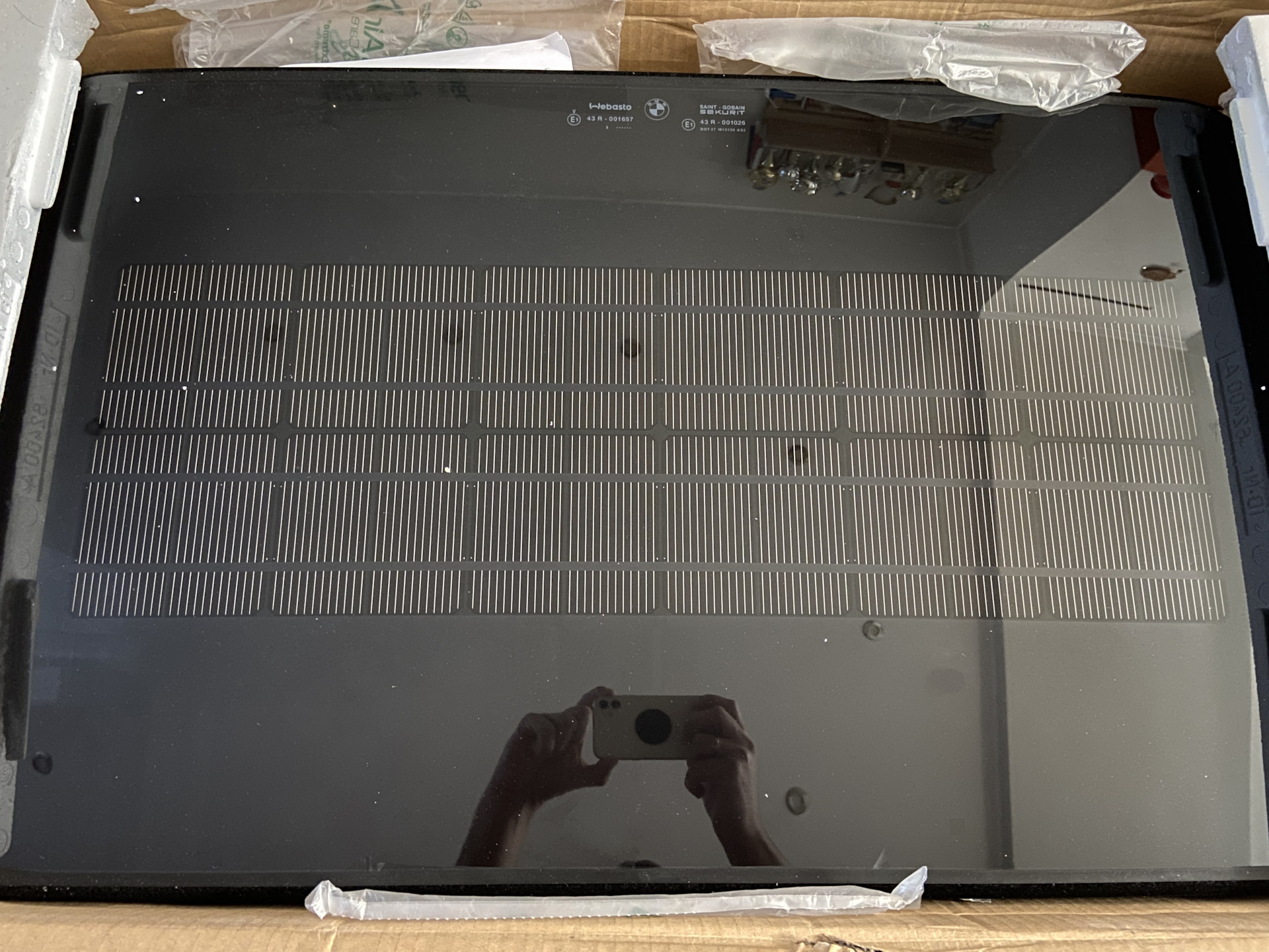 Итак, приобретен Люк с солнечной батареей на нашу Alpina B3. Ключевая функция — она включает специальные 6 вентиляторов на проветривание салона от энергии солнца. В том числе в тот момент, когда машина стоит закрытой. Сам по себе — прозрачный.