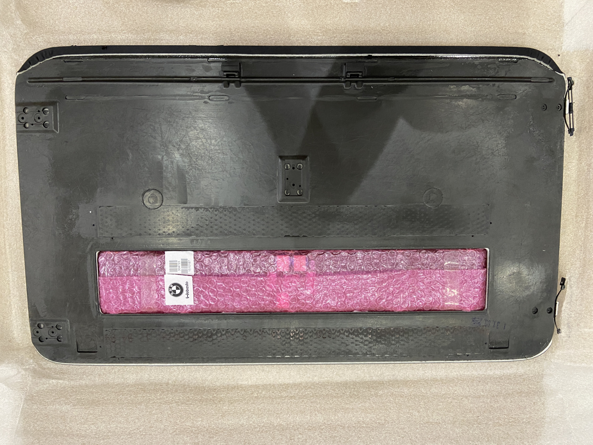 Состояние — абсолютно новый, со всеми необходимыми документами и инструкциями. В комплекте идет ДВЕ обшивки люка снизу — черная и бежевая (в зависимости от того, какой потолок на машине).