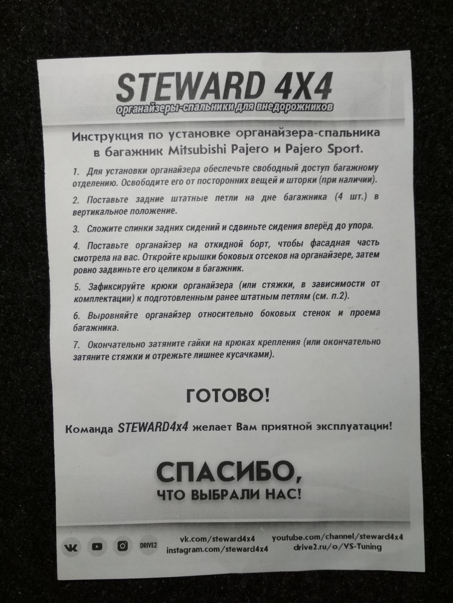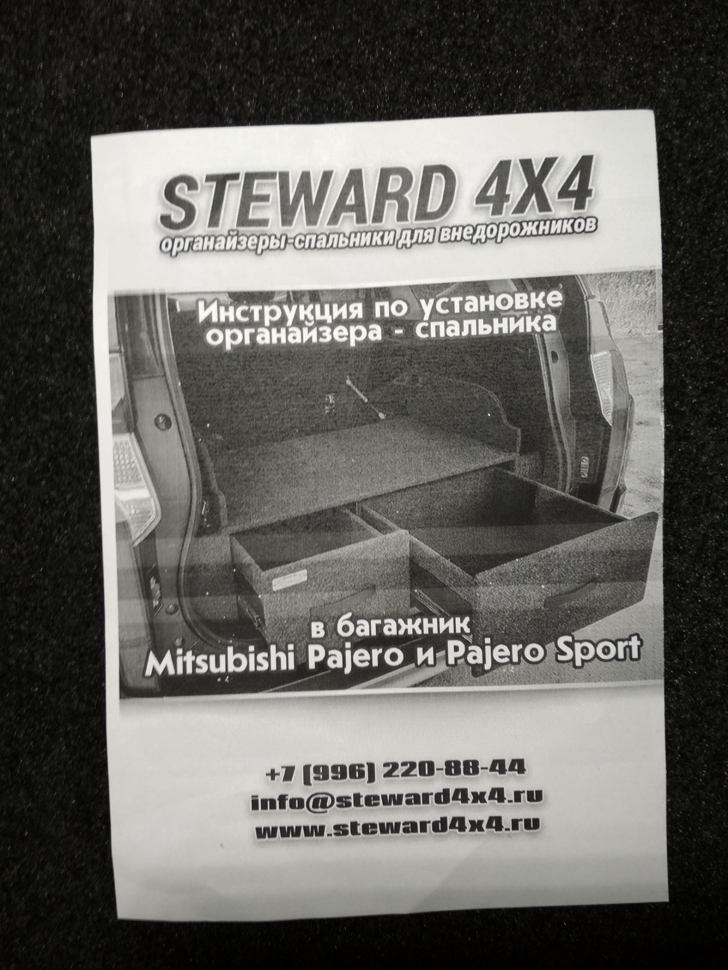 Так как, к сожалению, задний ряд сидений в падЖере не складывается в ровный пол, как это делается например в том же Nissan Pathfinder, а необходимость в спальном месте в авто для меня имеет место быть), было решено установить спальник-органайзер от достаточно известной в своих кругах, компании STEWARD 4x4 ( steward4x4.ru ). Компания уже не первый год специализируется на производстве спальников-органайзеров и успешно зарекомендовала себя на рынке автомобильного тюнинга в России и странах СНГ.