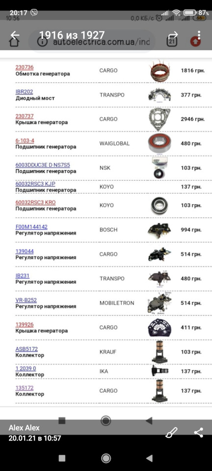 У меня в бж есть все артикулы для ремонта генератора