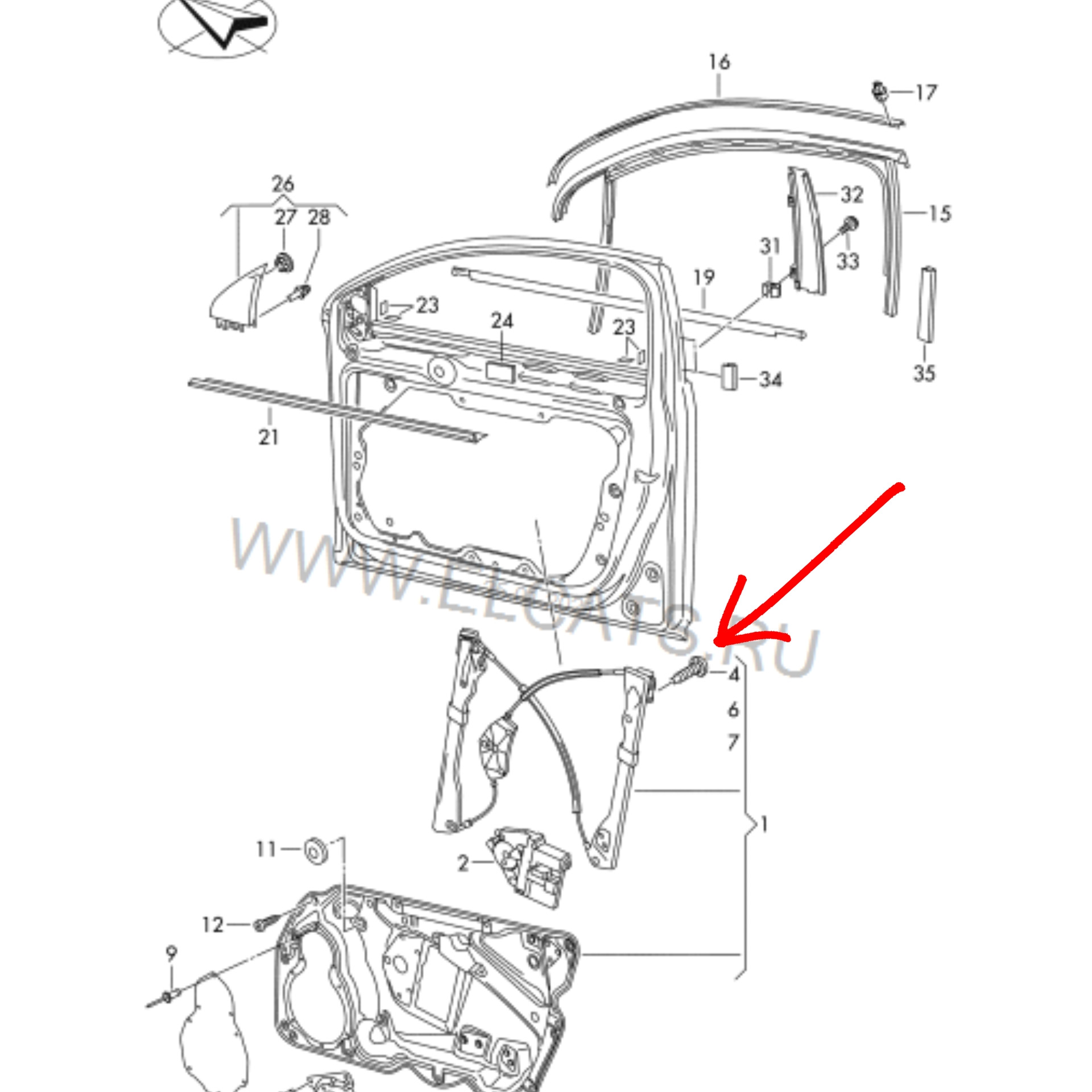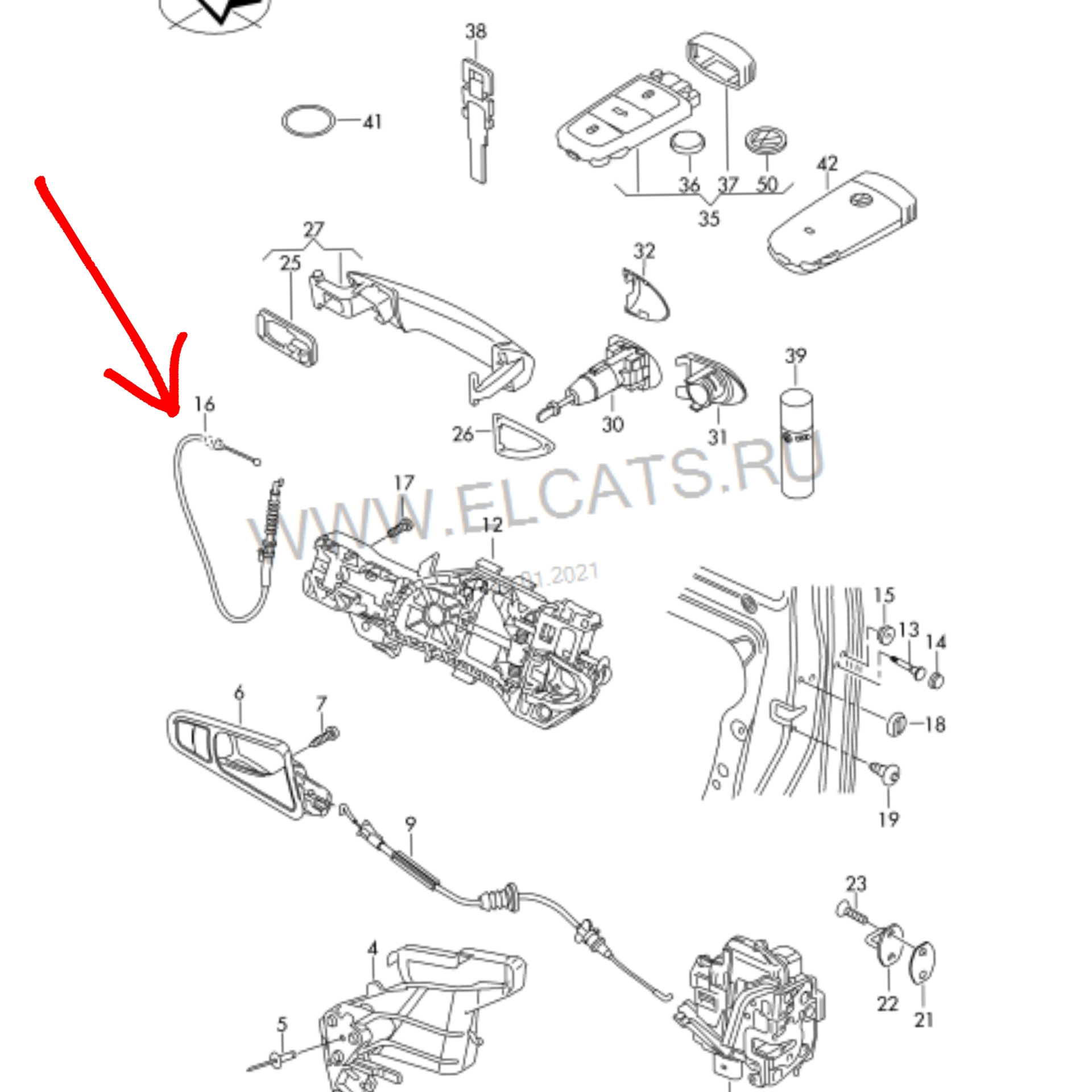 Тогда все дело в тросике наружной ручки. На схеме номер 16: