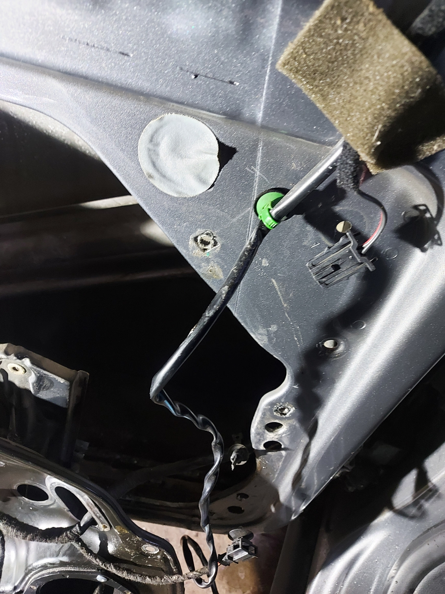 Специально время не засекал. Неспешно часа два наверное, с отрывом на другие дела. Больше сложность — достать, поставить трос с замка, чтобы все пластиковые фиксаторы не поломать. Дополнительно внутри двери убрал грязь, прочистил дренажные отверстия, промазал места коррозии мовилью