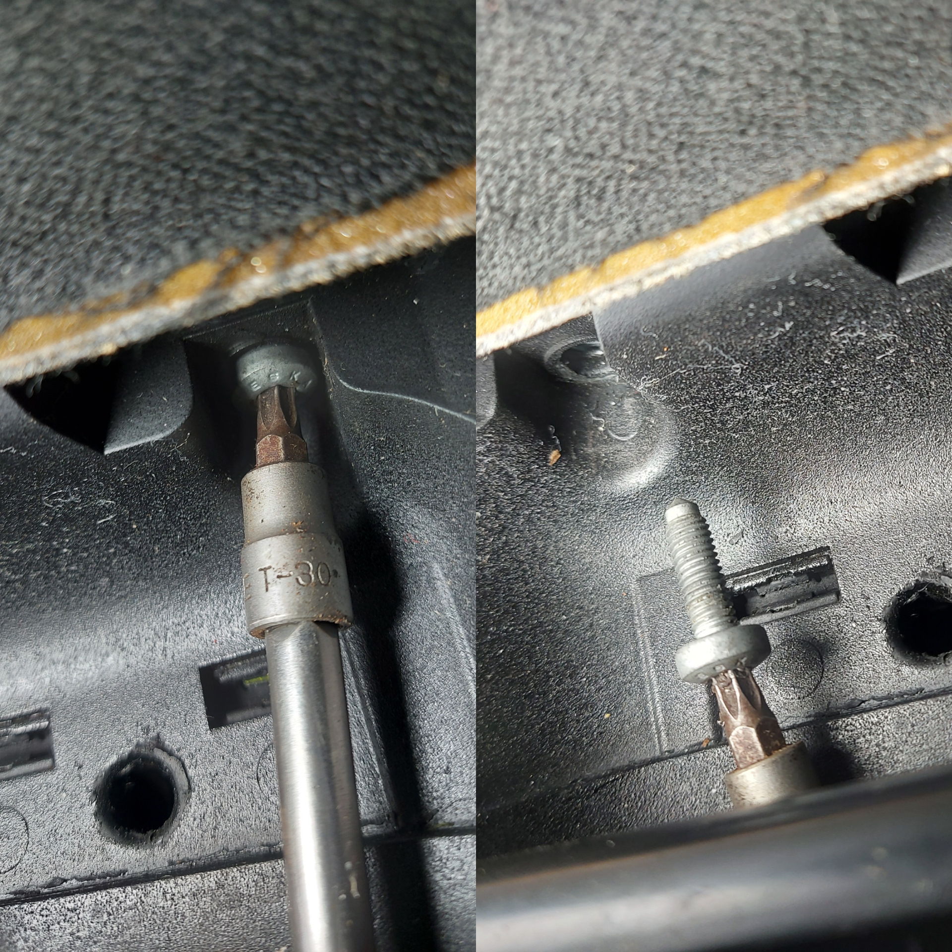 Помогите пожалуйста, у меня проблема на открывании стекла. У меня головка е5 не налазит туда, а другие велики. И обычными головками не выходит. У меня там будто либо слизаные болты, либо обычные. Кто то наколхозил видать. Подскажите как быть, как разобрать?