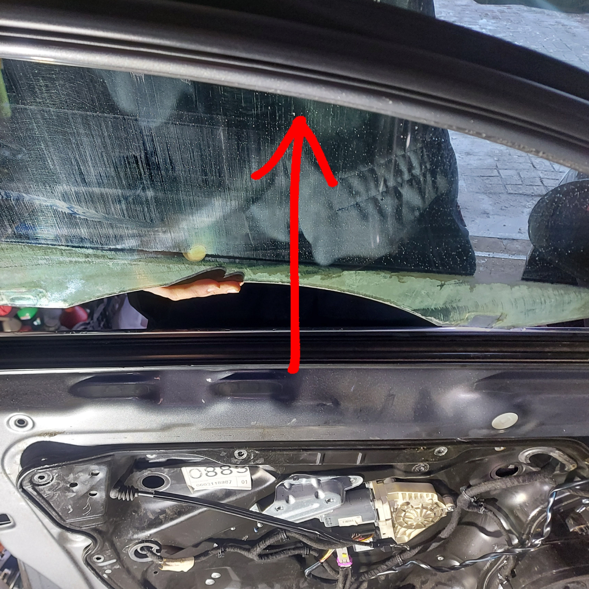 Со стеклом не достанется металлическая "карта", габариты не позволят. Оно же в полностью опущенном состоянии не сильно глубоко в двери опускается, а остаётся на уровне проема.