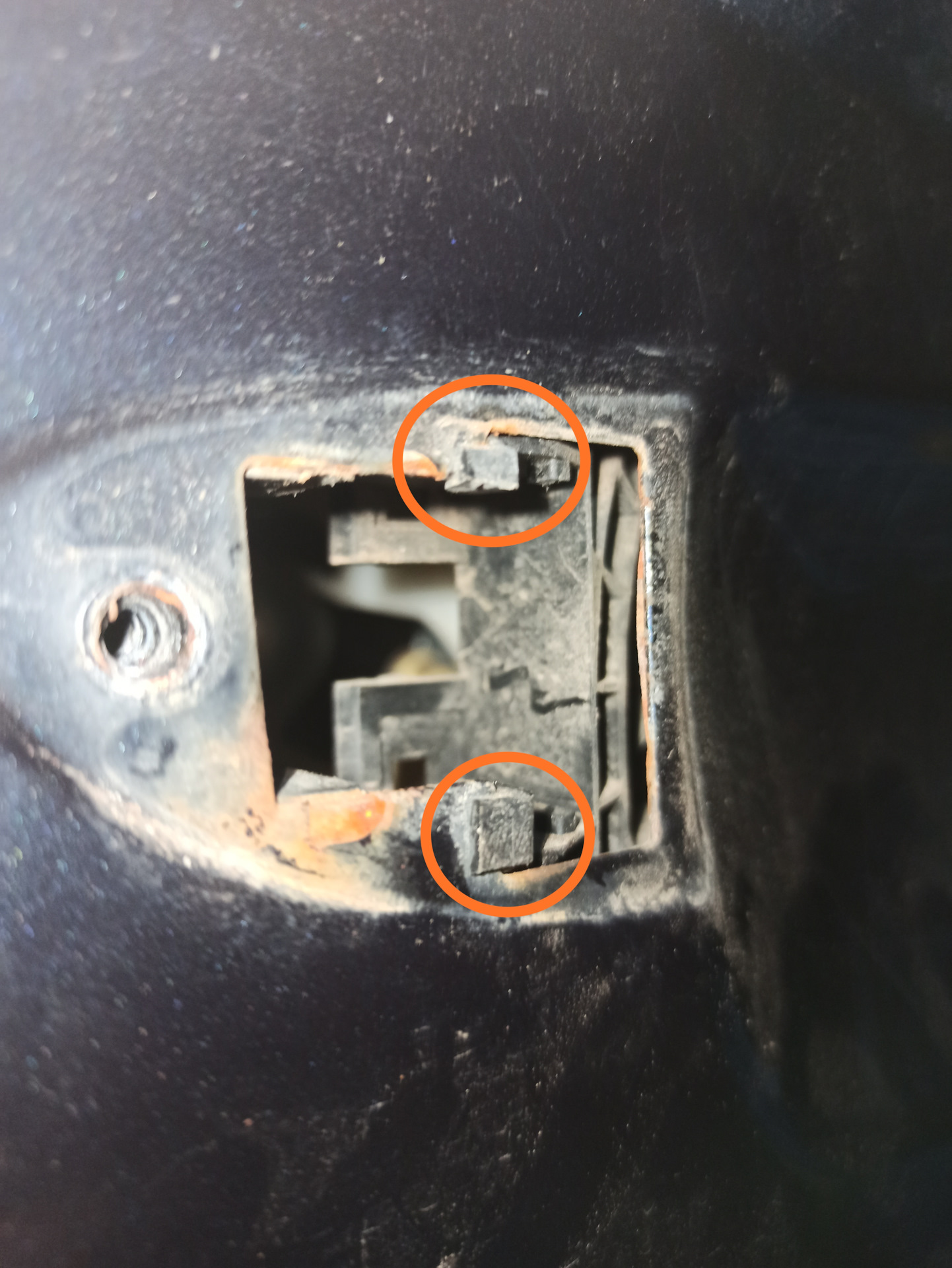 Я все открутил, ручку снял, саморез под ней выкрутил, с торца винты замка открутил, но не могу снять щит, что-то держит в районе замка. Тут случайно не надо вот эти усики под ручкой отщелкивать? Я же так понимаю замок снимается с черной пластиковой рамкой решетчатой? Разобрался, да эти усики надо было в сторону задней двери толкнуть чтобы они вышли из зацепа