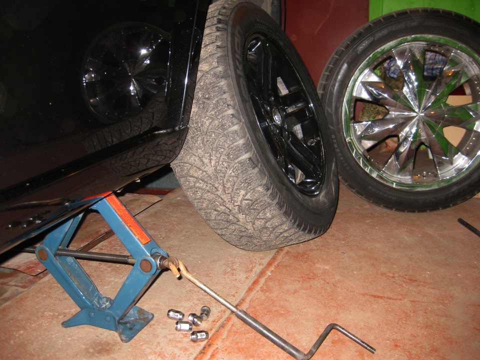 Черные диски поднадоели ! Хочется поставить летние 20ки хром. Но без домкрата шось не получается !