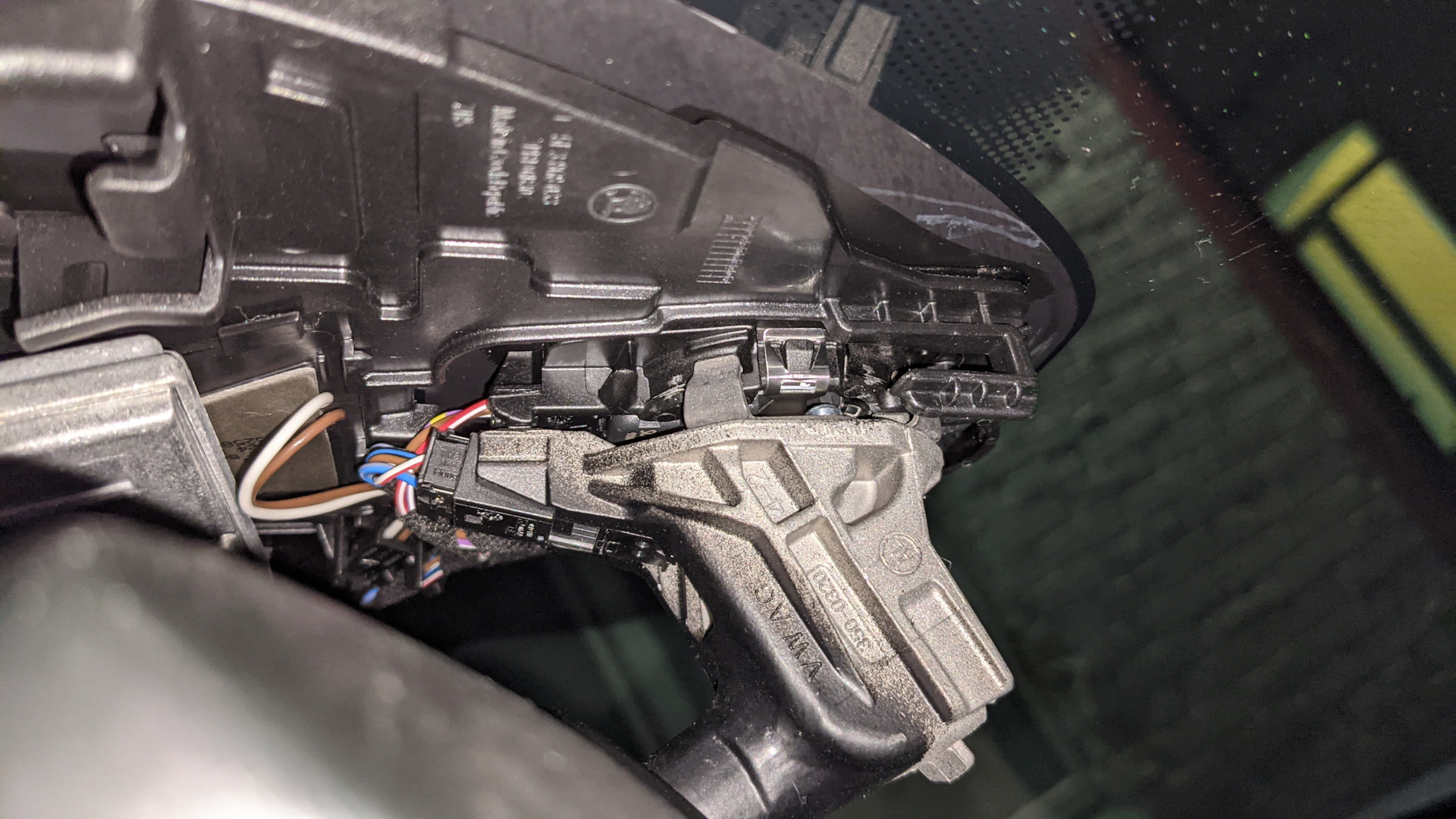 🧐 вспоминаю, что у меня дома где то есть зеркало без FLA, но тоже безрамочное, только не помню на сколько пинов и есть ли поддержка затемнения боковых. Повезло, зеркало оказалось 3G0857511AD на 6 пинов