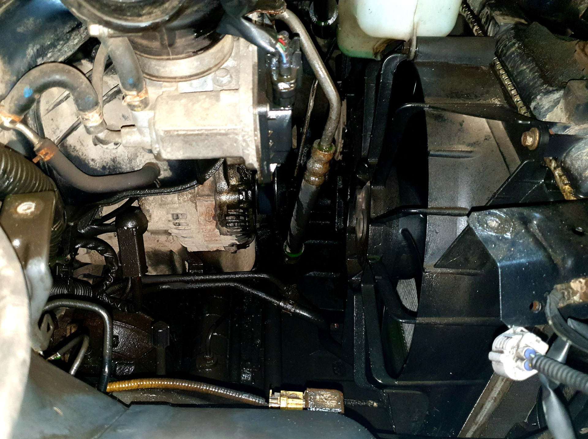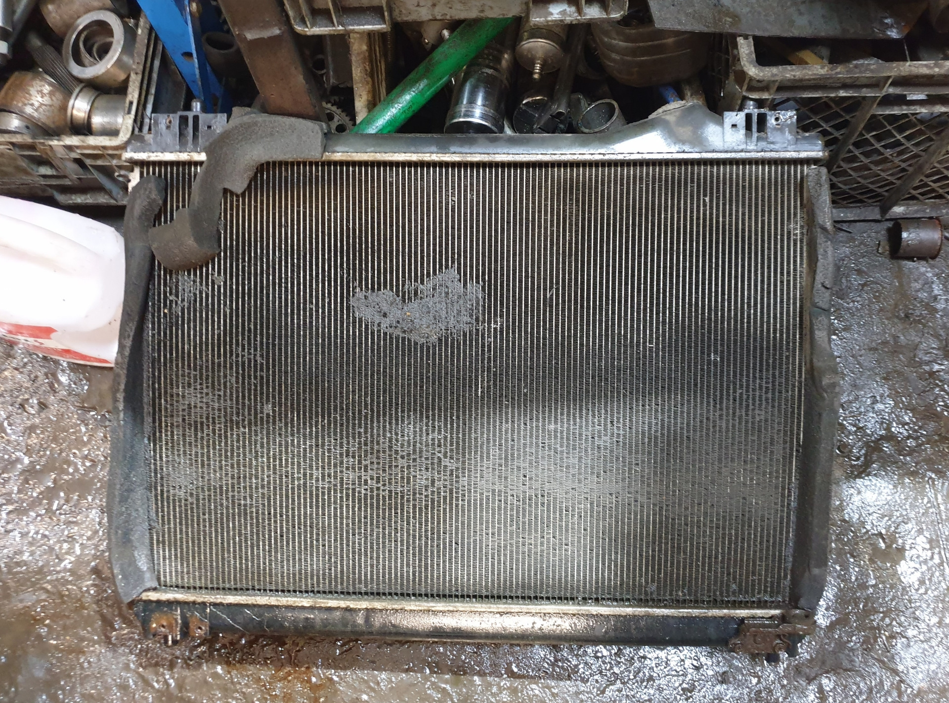 Видимо радиатор ещё оригинальный (denso). Приятно удивило отсутствие "шубы" из грязи. Видимо причина в поролоновых вставках по периметру