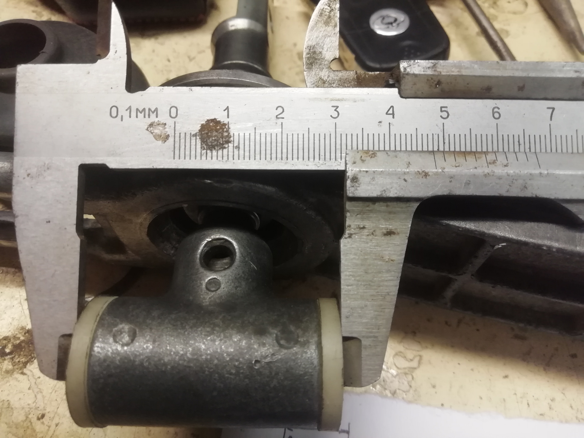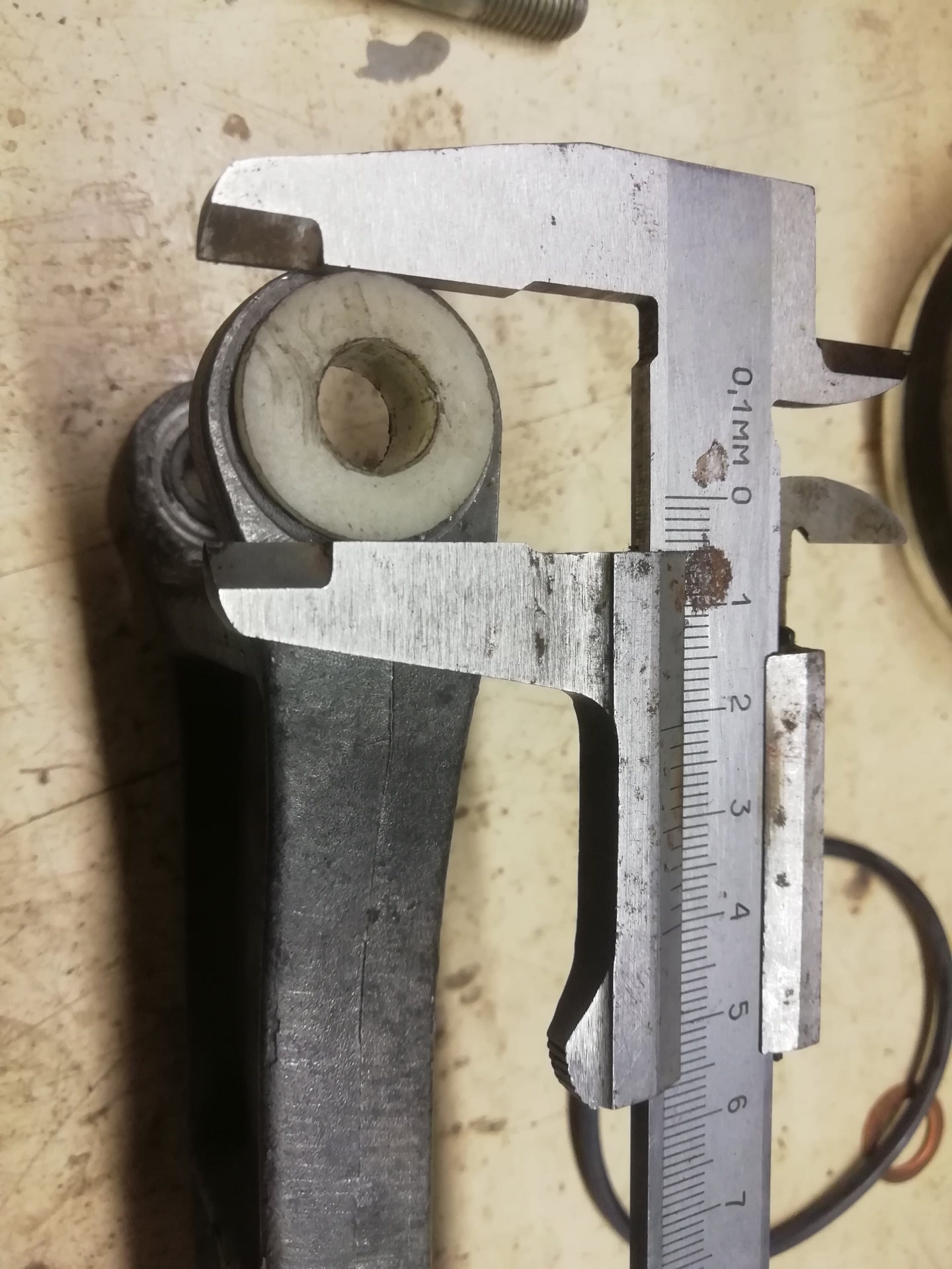 Диаметр штока, который молотком развальцевали. Намного он уменьшился со временем? И втулки копролоновые со шпилькой.