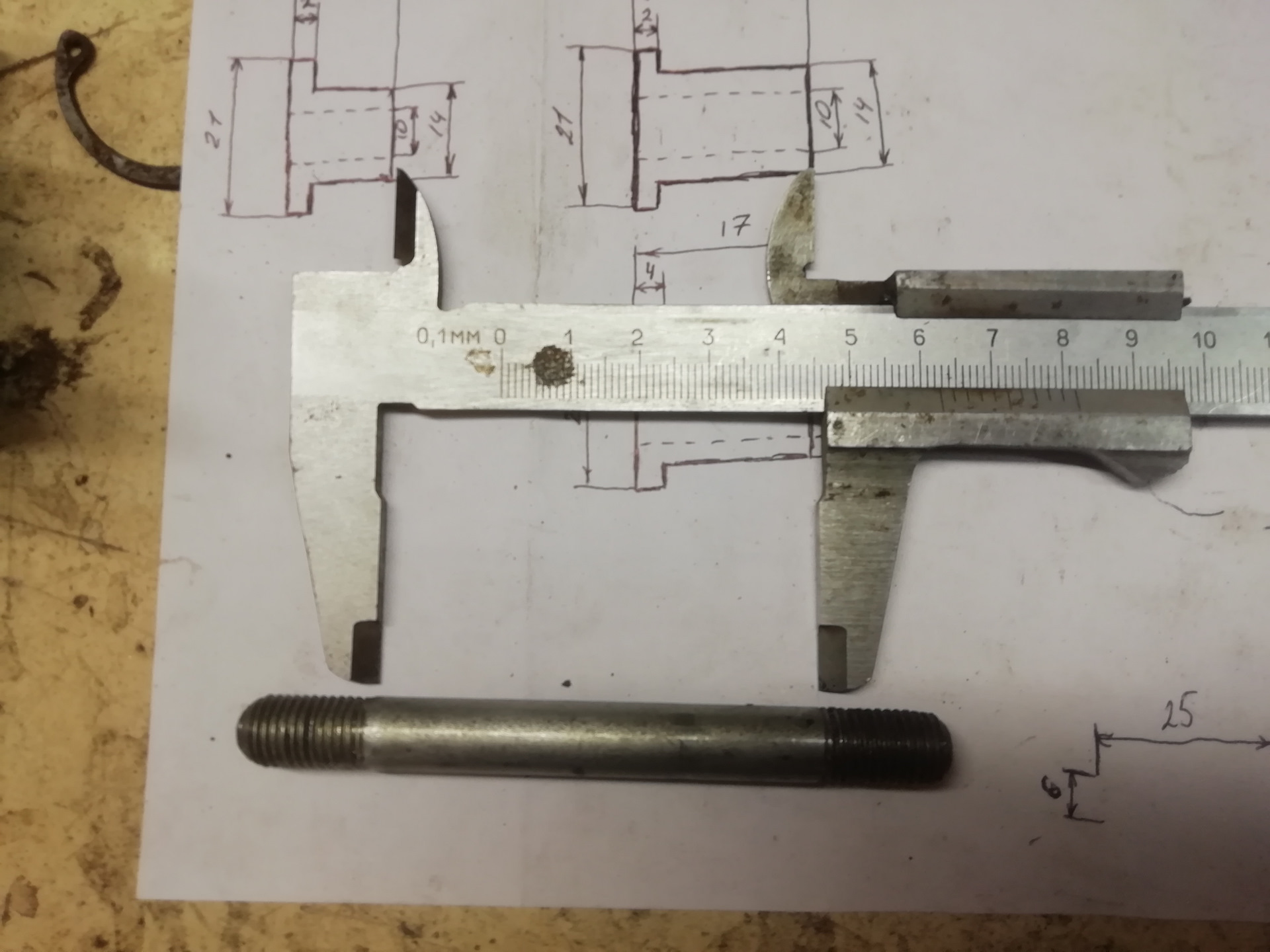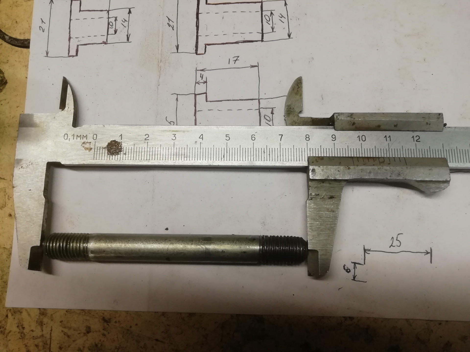 А шпильку с резьбой с двух сторон спецом вытачивал? Диаметр 10 мм? Не проще было болт подобрать?