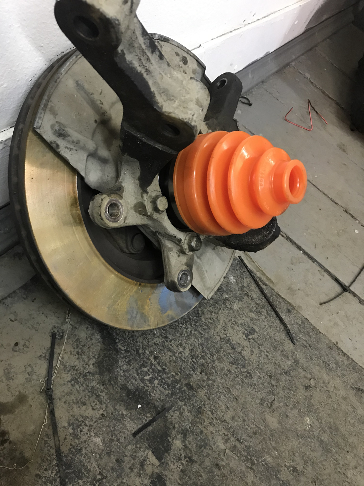 По технологии замены все просто, домкратим машину, подкладываем брус, снимаем колесо. Чтобы было быстрее сперва ослабил все гайки которые буду откручивать, ослабил ступицу, открутил рулевой наконечник, нижнюю шаровую, верхнее ухо стабилизатора поперечной устойчивости, тормозной супорт, болты крепления ступицы к амортизатору, снял датчик авs, открутил тормозной шланг от амортизатора и все разобрал в итоге ступица в руках, пациент торчит из чрева редуктора. Открутил 4 болта от фланца редуктора и вынул шрус. Молотком разбил сепаратор (одевайте очки, куски разлетаются как от фугаса) внутрянку сепаратора отрезал болгаркой. В новый шрус набил смазки, одел на вал пыльник (сел очень плотно и на вал и на шрус) добавил под пыльник смазки и затянул хомутами. Перед сборкой почистил пыльник шаровой и рулевого наконечника. Резинки побрызгал силиконовой смазкой. Сборка в обратной последовательности. Все заняло часа 3-4, в перекуры не отдыхаем, а убираем все лишнее что валяется под ногами, чтобы потом глаза не разбегались в поисках ключа на 14) Прокатился 30 км, посмотрел, смазку не выдавило.