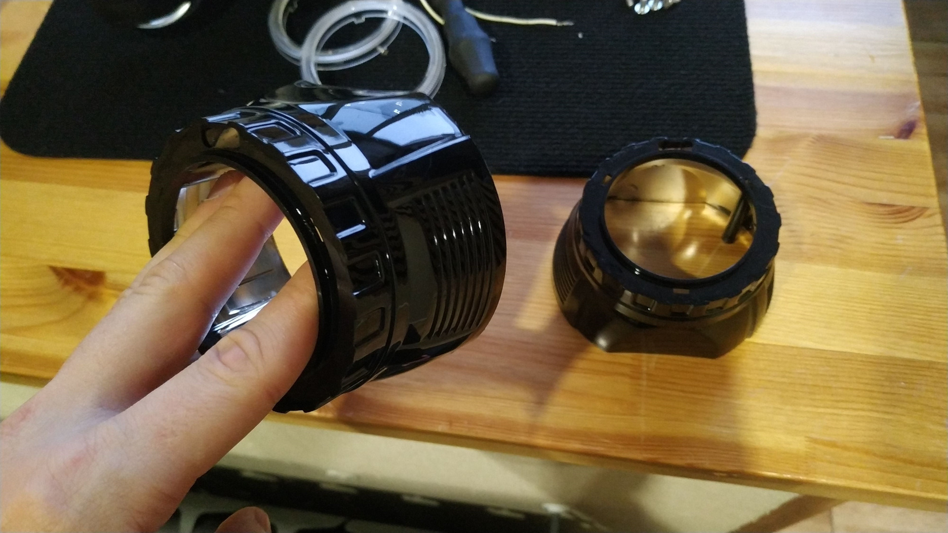 Доработал сразу линзы. Ну не нравиться мне эта ступенька СТГ. Подправил, сделал более плавный переход как в штатном bi led. Одел маски, закрутил в фаре. Регулировать не стал, вроде светят.