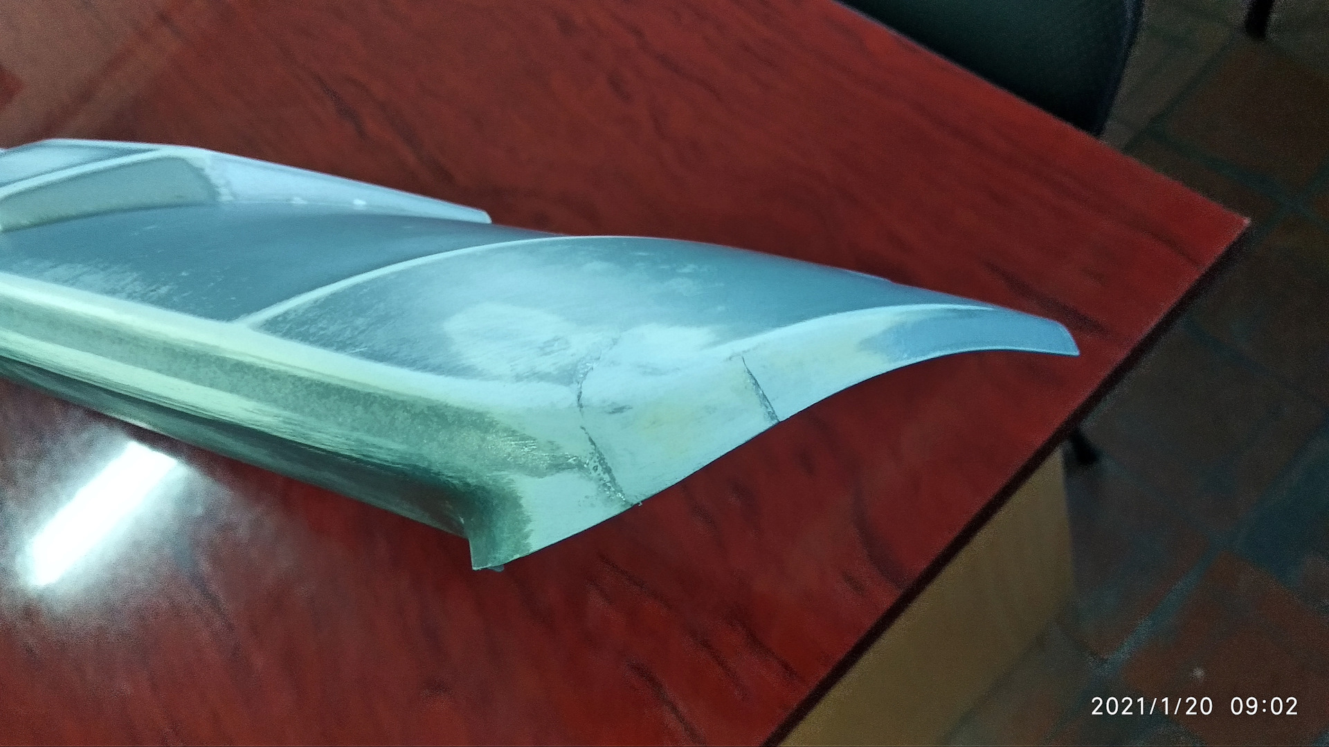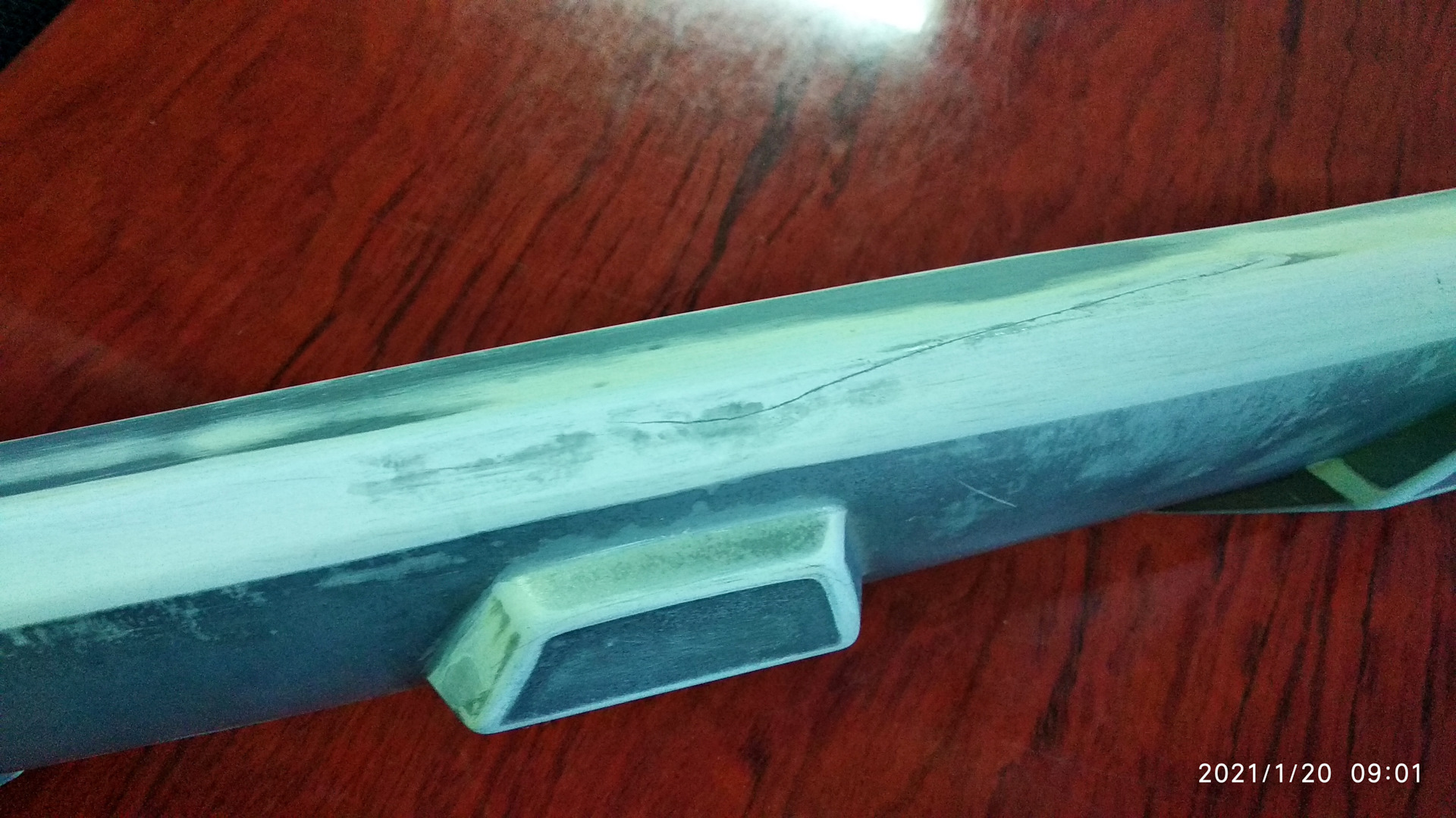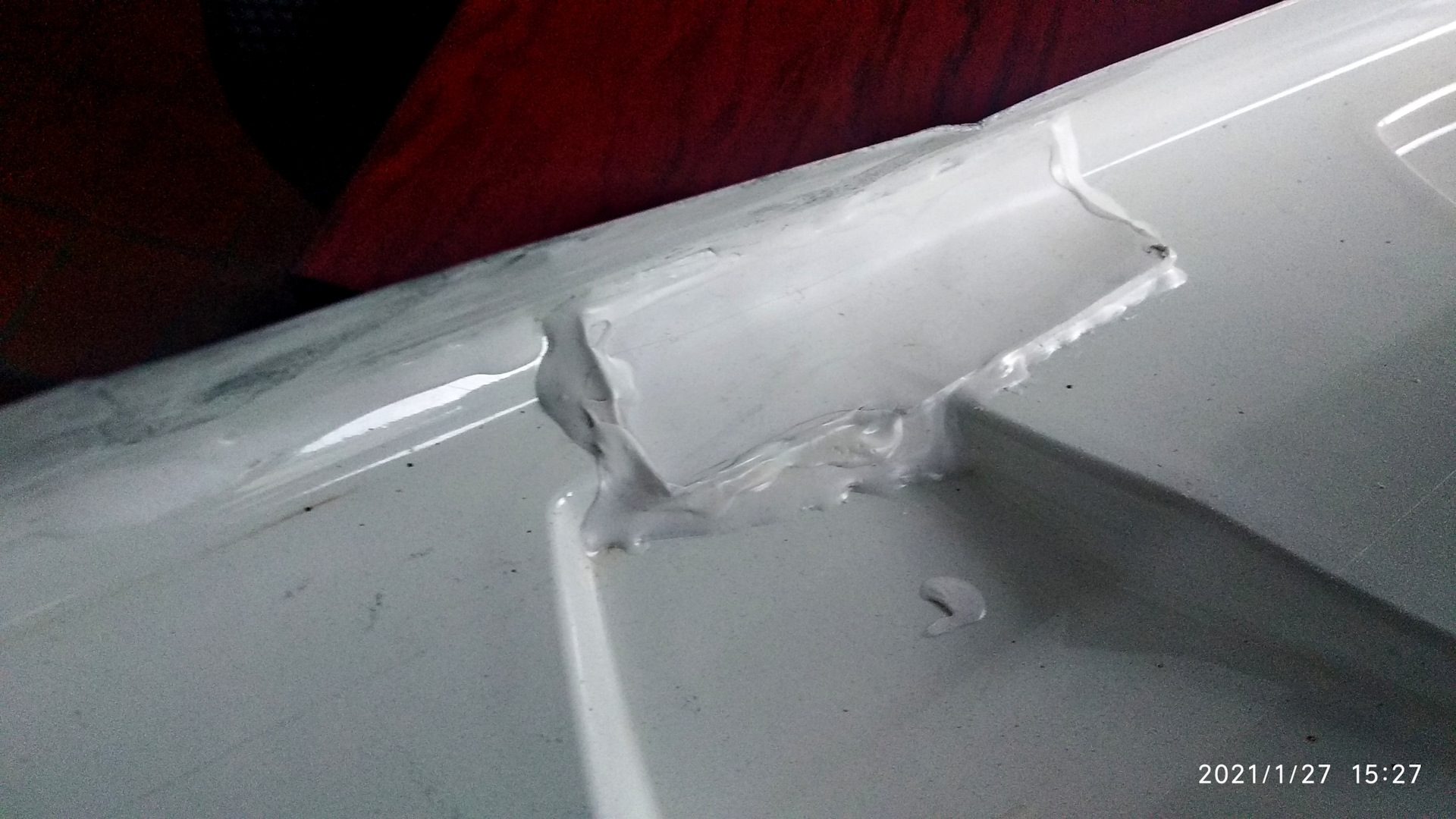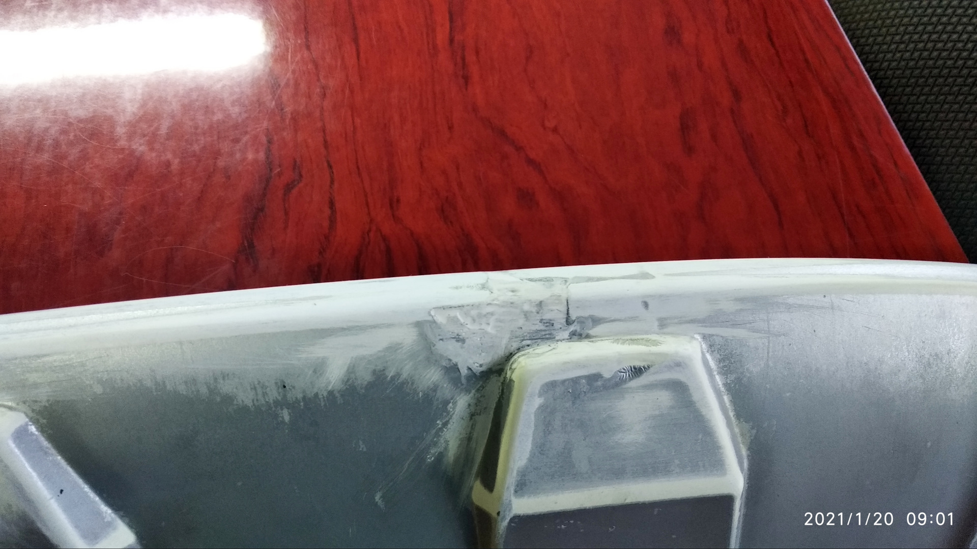 От удара накладка потрескалась в нескольких местах, да и старые трещины, от поездок по лесам тоже надо было ремонтировать . Осколков конечно не осталось, по этому использовал для ремонта пластиковые воздуховоды, были вырезаны заплатки, согнуты при помощи промышленного фена по форме накладки и вклеены . Вот, что из этого получилось