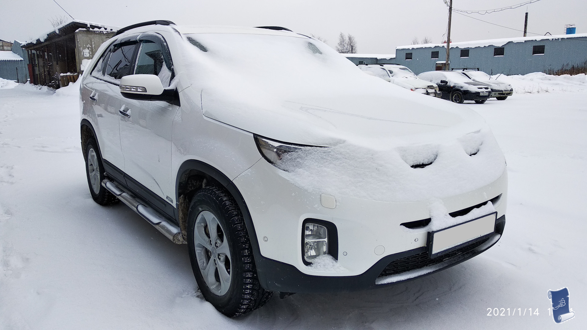 А пока всё это сохло и машина стояла в тепле, наклеил на заднюю дверь резину от снега, так же как сделали большинство владельцев Соренто