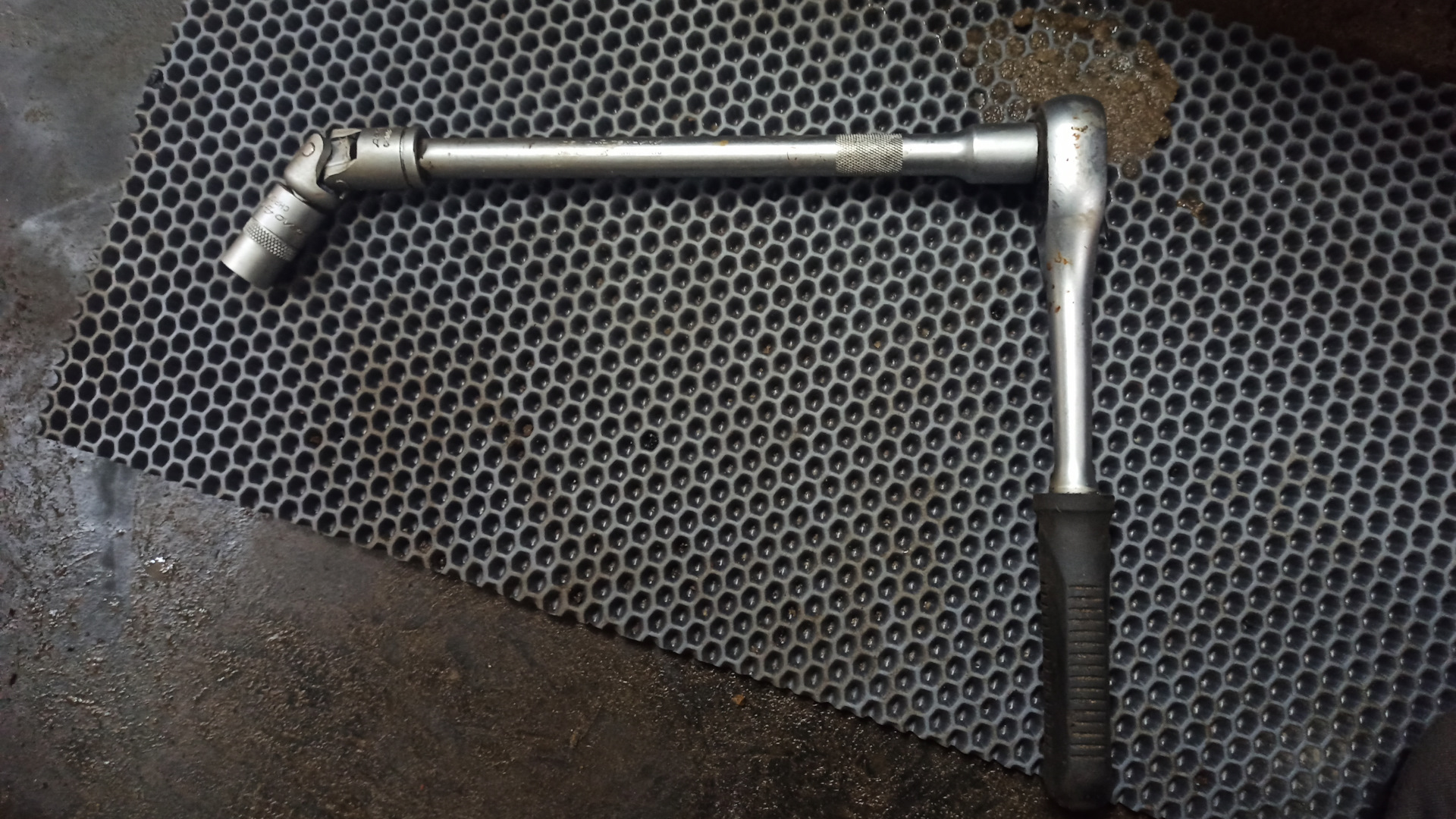 Берем головку на 12, карданчик, удлинитель и трещетку