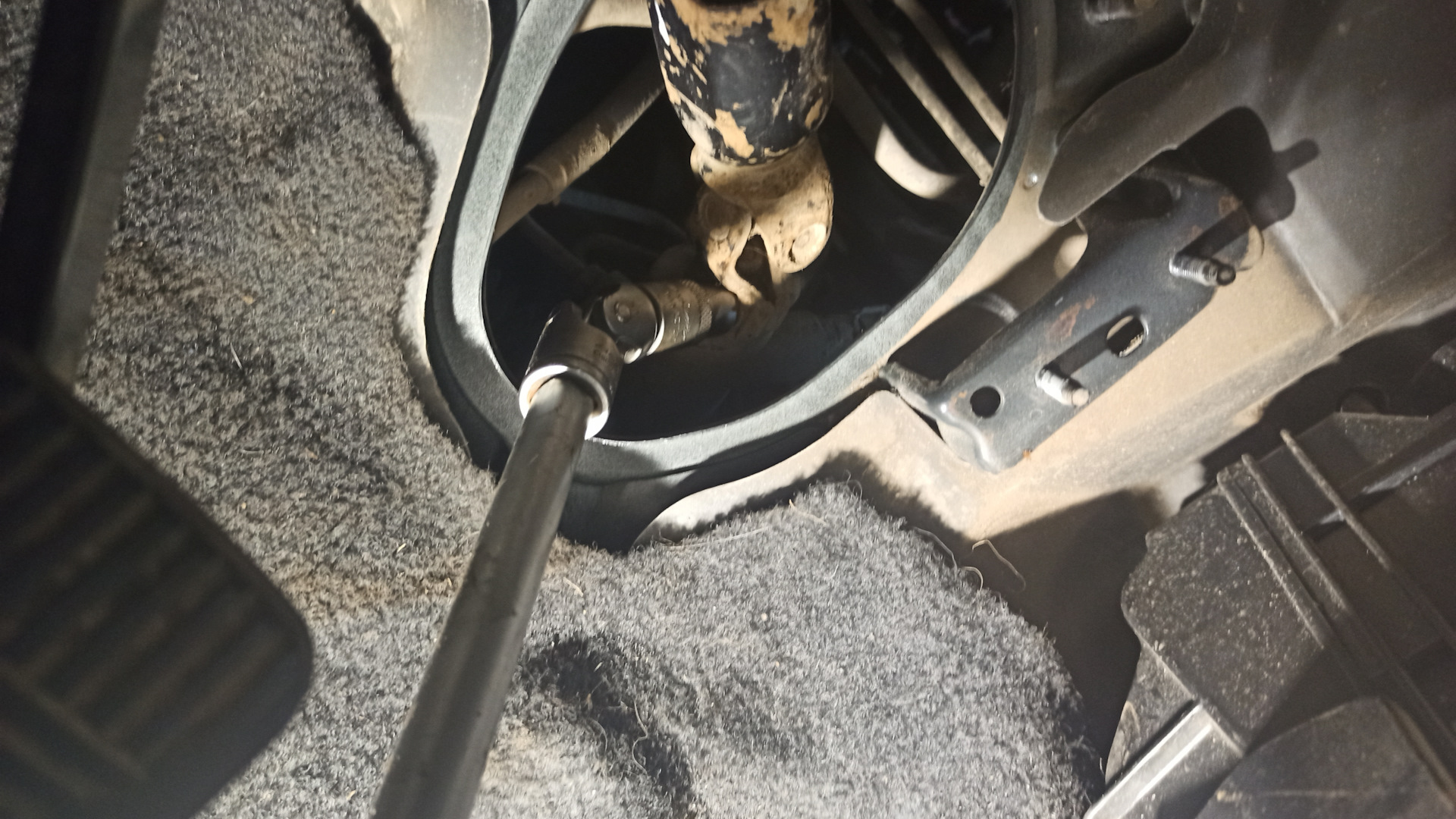 Далее откручиваем болт соединяющий рулевой вал, руль перед этим фиксируем