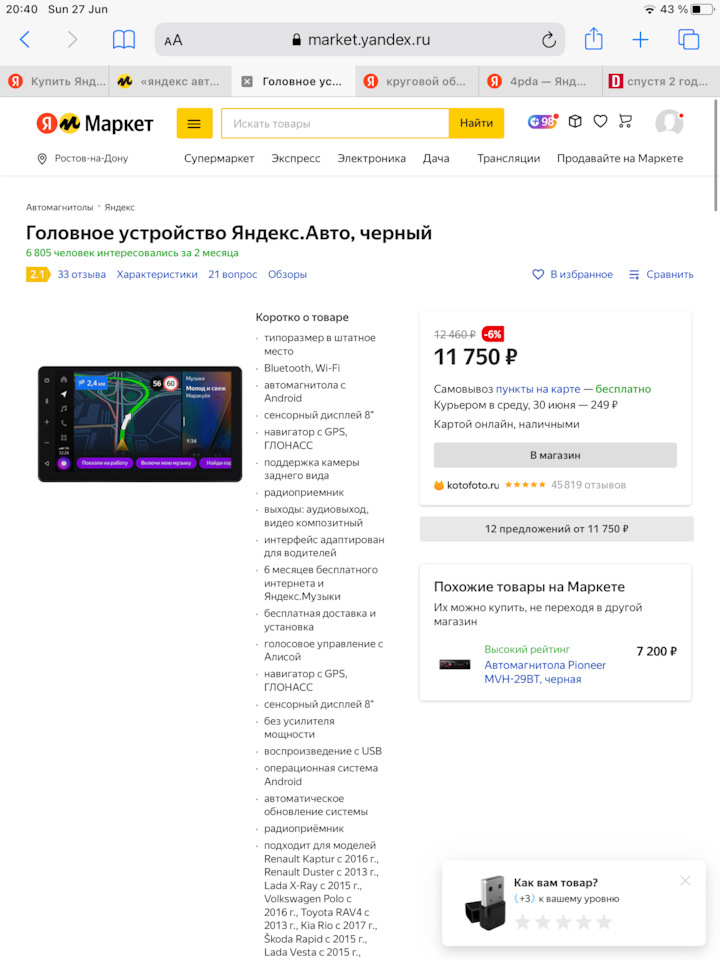 Я продал за 15 000, а предлагают именно штатную Яндекс авто? 7000 отличная цена…