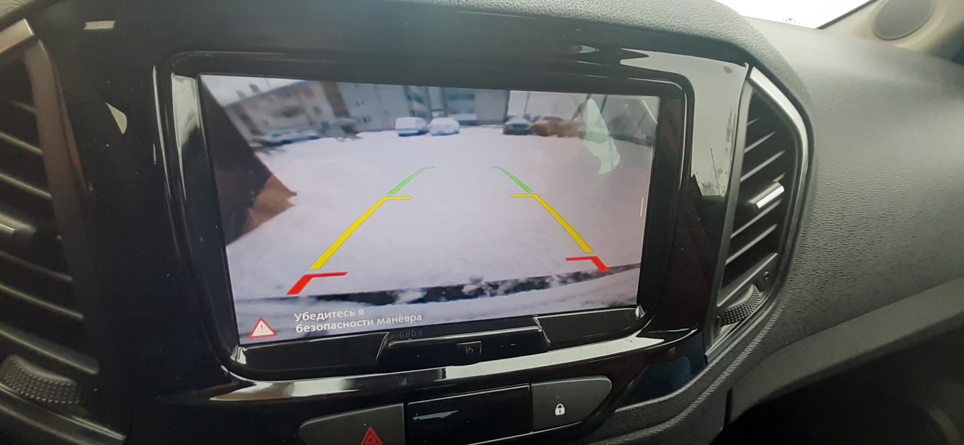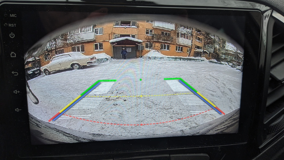 4. Цирк с конями по задней камере. Мало того, что она достаточно долго "плясала" то зеркаля то отображая нормально задний вид. То есть Вы сдаете задом с парковки вдоль дороги по краям чужие авто вы под углом к проезжей части медленно двигаетесь и тут оп и вид в зеркале -дорога с другой стороны и т.п. Ощущения — огонь. Так теперь она просто перестала работать. Но, это не все. Парковочные линии что вы видите на экране рисует Яндекс Авто и она может самостоятельно выбирать какие нарисовать. См. фото. Был момент она рисовала их черно белыми.