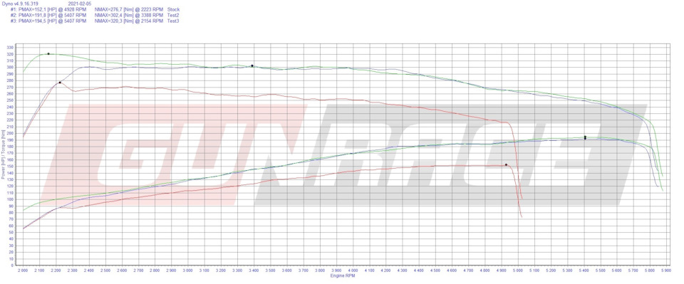 📉 Stock измерено: 152 Hp 276 Nm (режим кратковременного овербуста 10с)