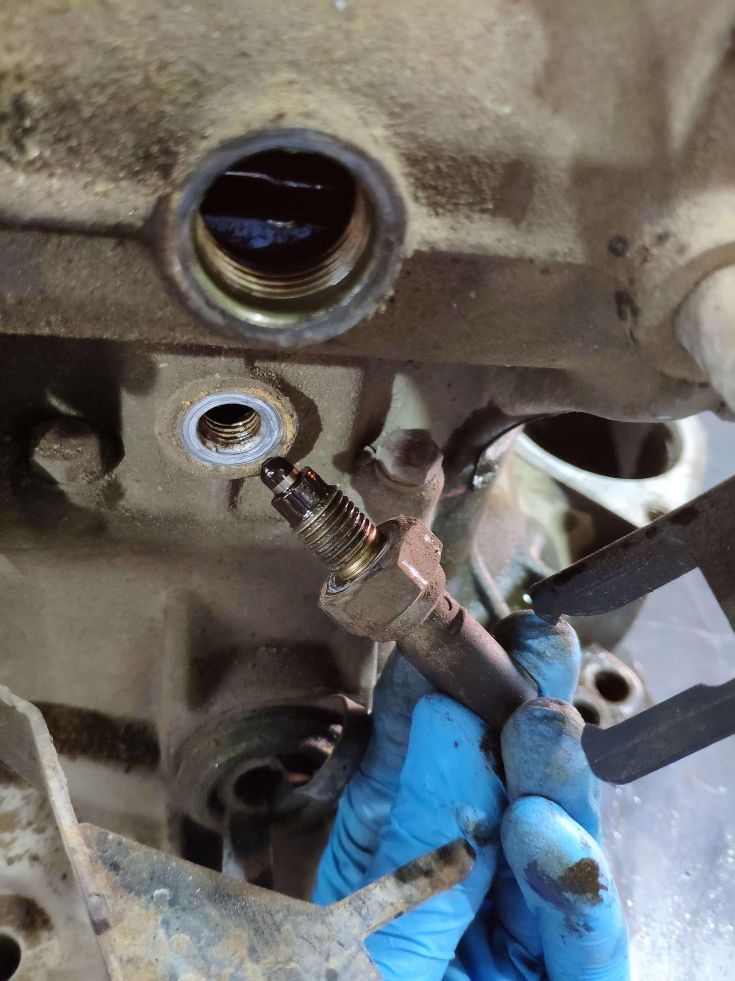 1)Верхний подшипник первичного вала который нужно закрутить после соединения двух половин имеет крепление пластиной, которая падает вниз и длины болтов не хватает схватиться и наживить, резьба и размер редкий, долго искал такой же удлинённый, после обнаружения проблема иссякла.