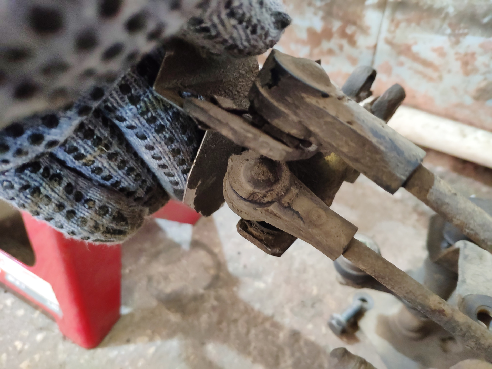 Ставим коробку в нейтраль и откручиваем ухо штока выбора передач,