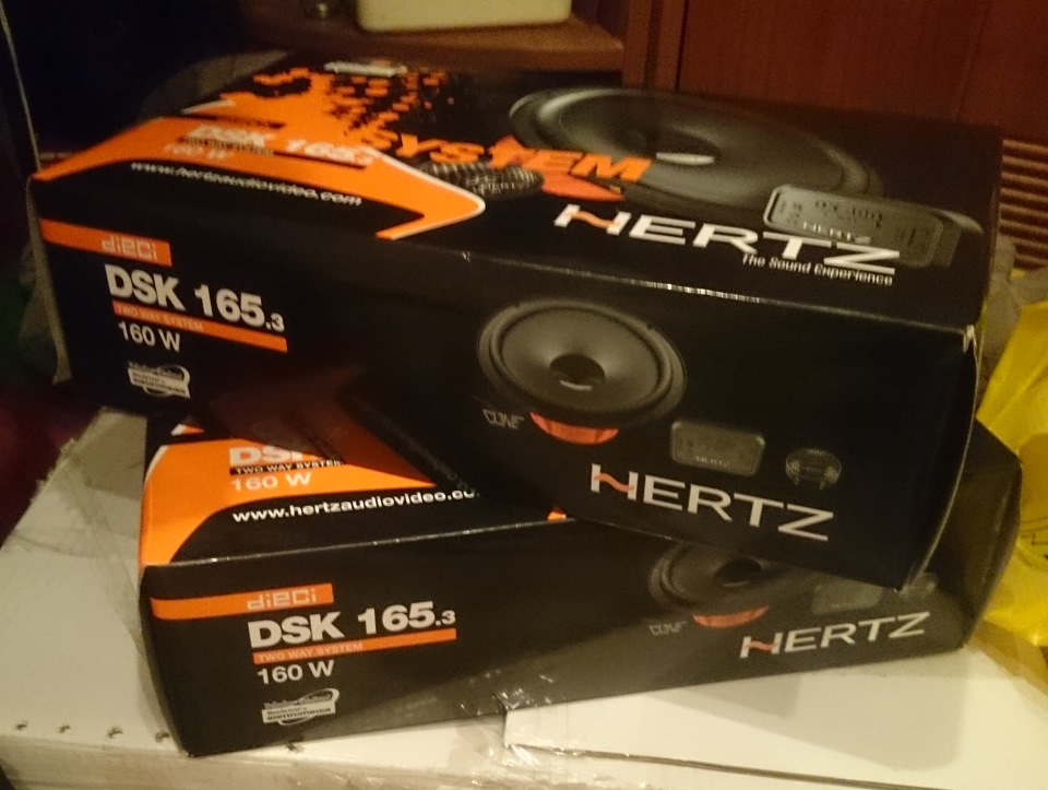 и два комплекта колоночек Hertz DSK 165.3 (миды + твитеры + кроссоверы), по комплекту на зад и на фронт. Устанавливаться будут в штатные места (диаметры подобраны), никаких подиумов из фанеры и прочего hand-made колхоза.