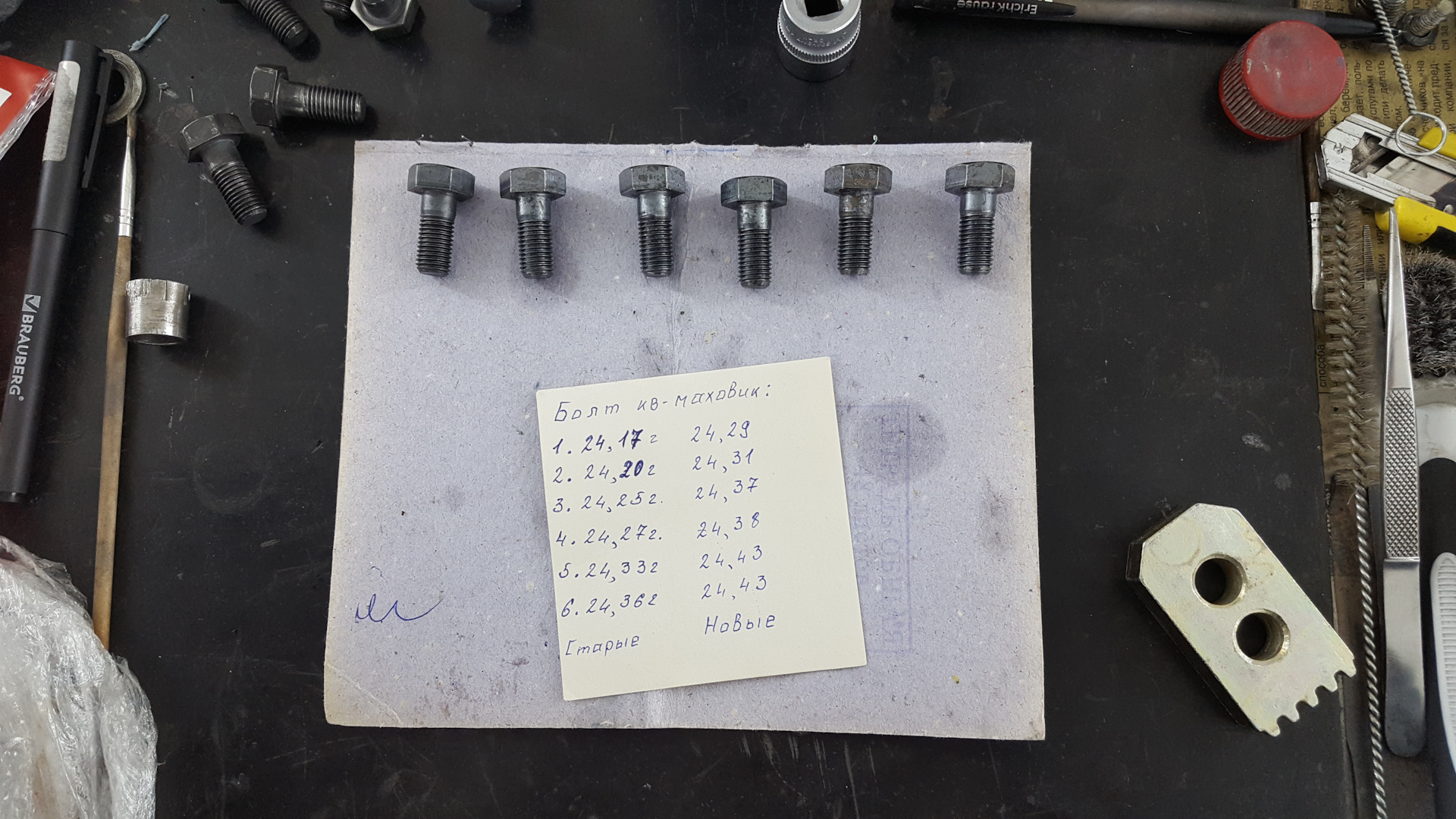 Новые болты подбирал по весу, чтобы вес новых болтов отличался по весу сопоставимо старым.