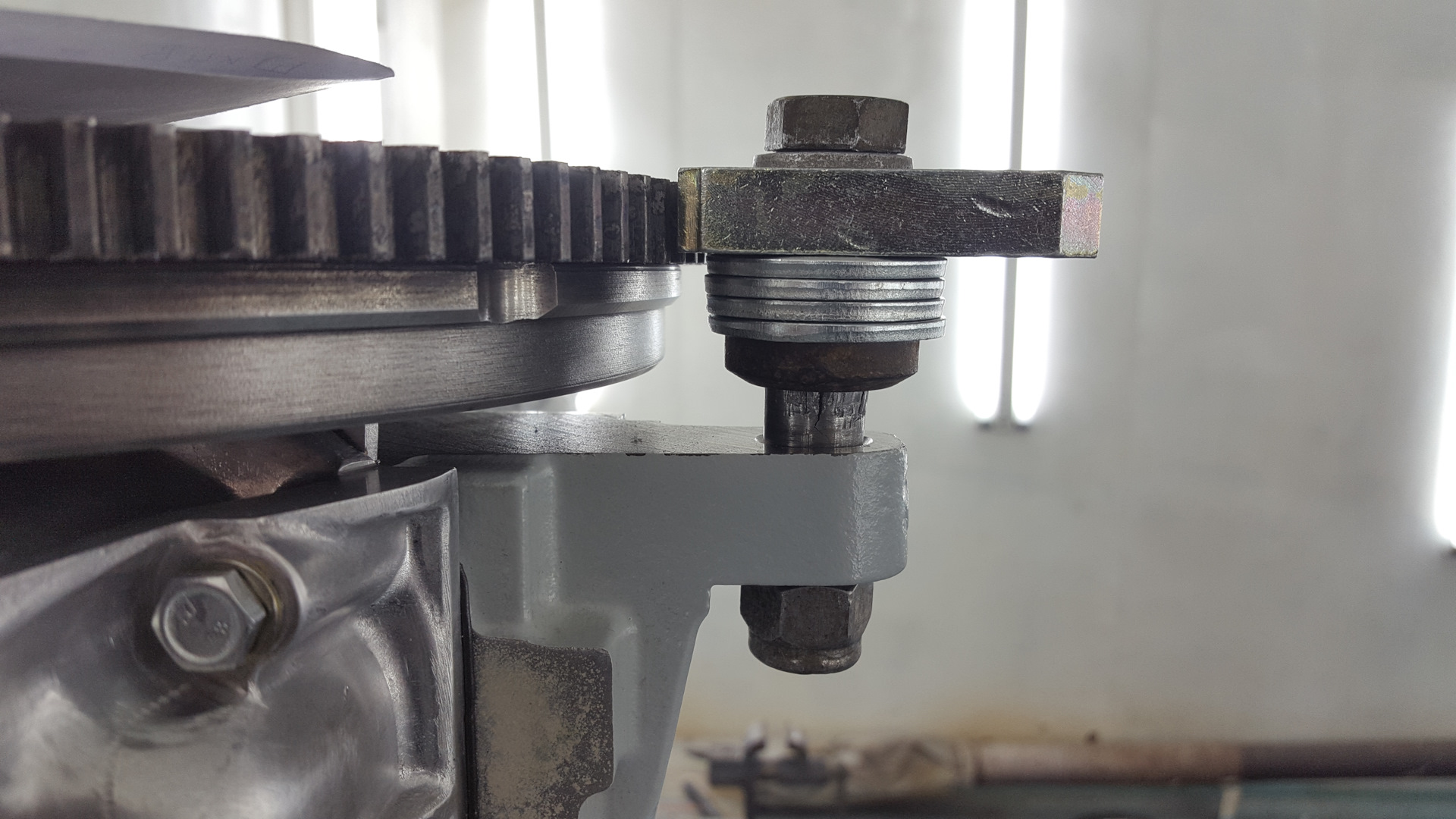 Стопор маховика у меня был в виде болта и старого вкладыша!)