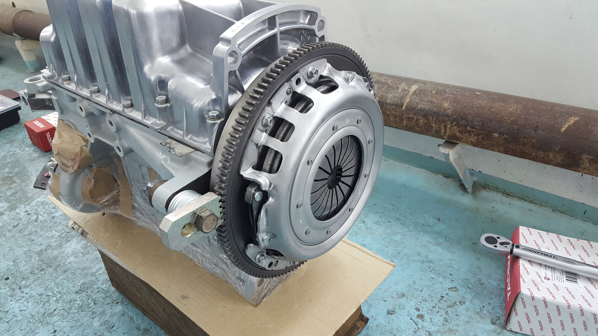 И так, в сборке низа двигателя дело дошло до установки маховика и сцепления.