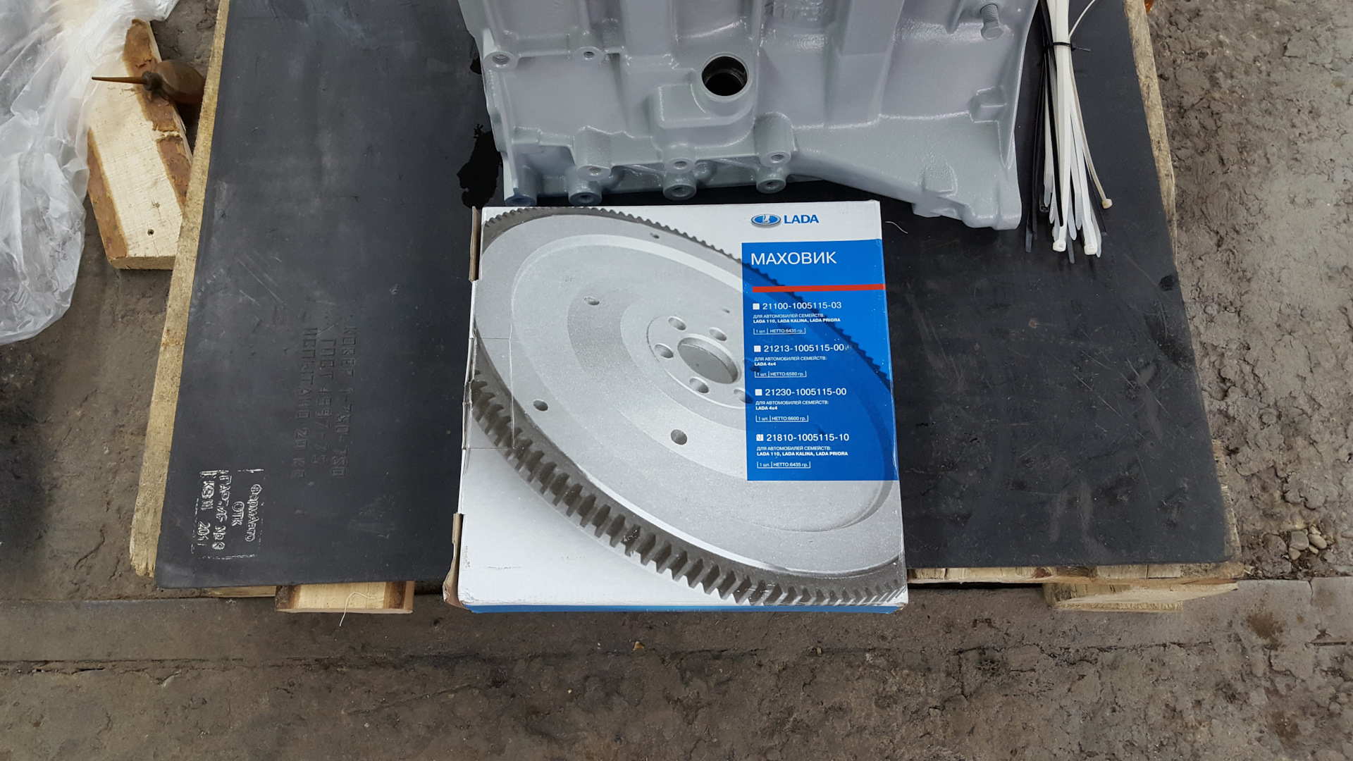Маховик, который стоял на купленном двигателе, был под тросовую КПП, соответственно венец был с другой стороны маховика. Это открытие я сделал для себя, сравнивая родной маховик (2181-1005115) со старым маховиком (2110-1005115) с моей восьмёрки. Поскольку с данным маховиком я раньше не сталкивался, то позвонил знакомому мотористу, дабы он развеял мои сомнения. Собственно, он подтвердил мои предположения.