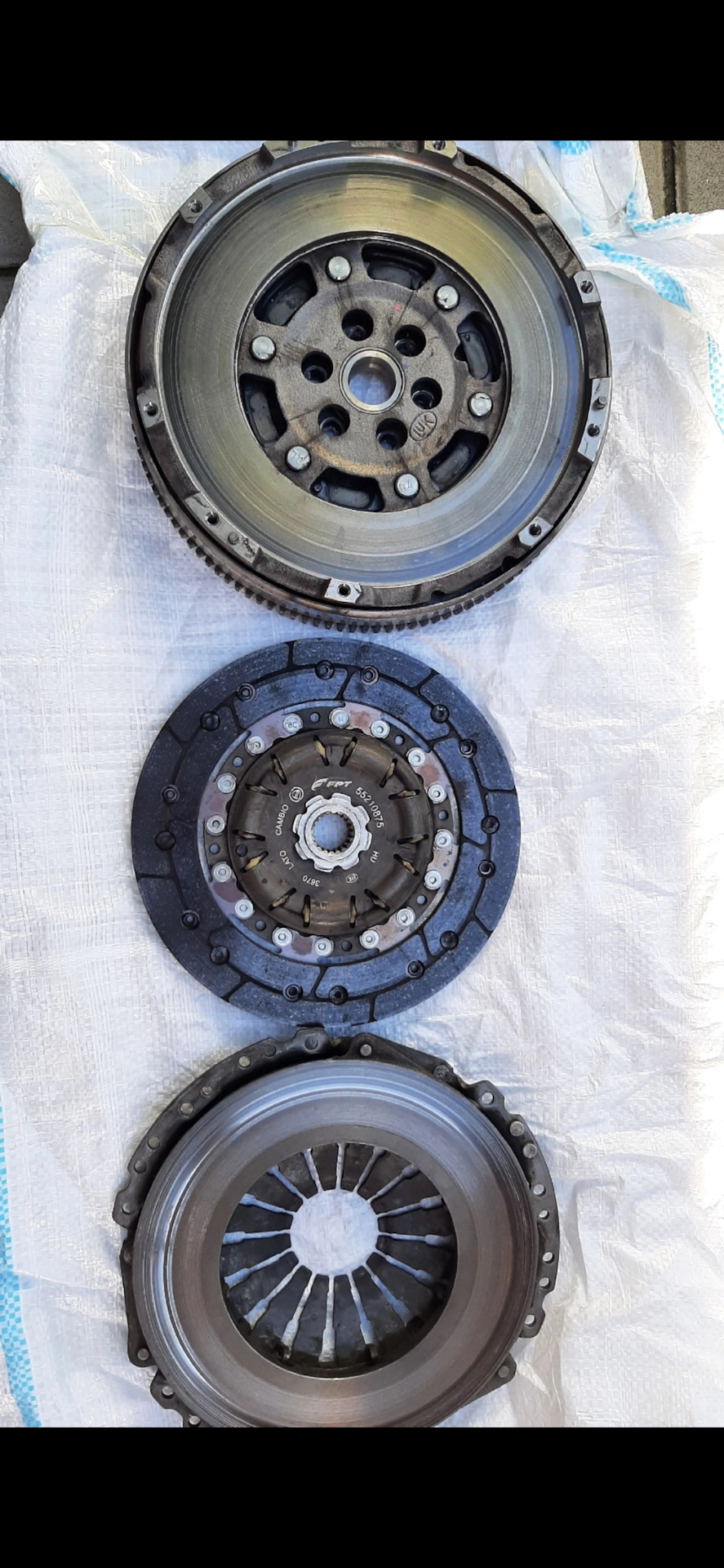 Вот нашёл фотку когда меняли в октябре 2022 г. В апреле когда менял почти также было ( правда не такая сильная выработка), но на другом маховике, диске и корзине.