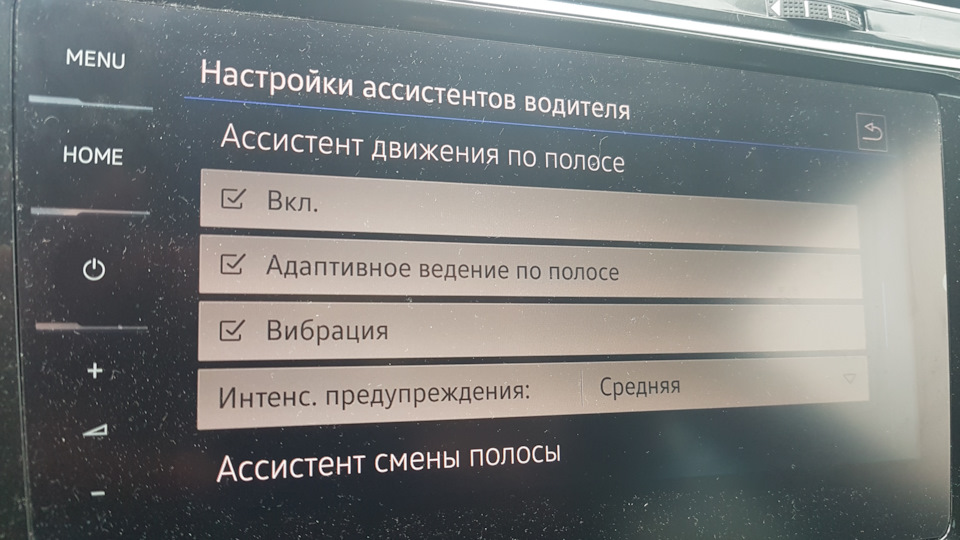 Адаптивное ведение по полосе нужно активировать, чтобы тачка не болталась как дерьмо в проруби между полос.)))