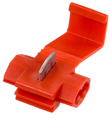 (вроде легко, но я все равно перепутал его с голубо-оранжевым проводом идущим на ДПДЗ), аккуратно щупом протыкаем изоляцию, и если всё верно — мультиметр запищит, показав наличие цепи. После этого берём два скотчлока красного цвета (главное красный, ибо у него максимальное сечение зажимаемого провода 1.25мм, а у синего от 1 до 2.5мм, и он не обожмет нормально провод от ЭБУ), одним присоединяемся к проводу от ЭБУ, во второе отверстие любой провод, вторым около разъема OBD присоединяемся к голубому проводу, идущему в 7 пин с тем проводом, который кинули от первого скотчлока.