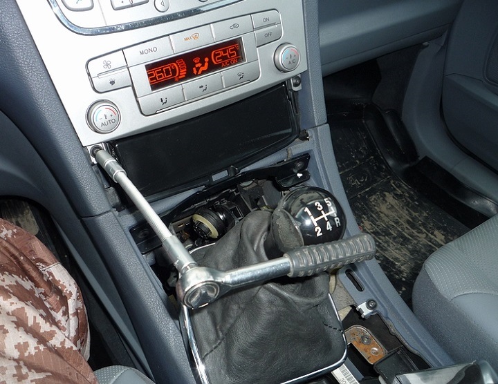 -вытаскиваем ручник ., подсовываем прикручиваем панель.