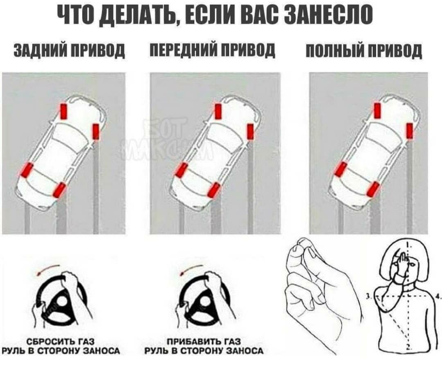 Истина как всегда проста-выбирайте скоростной режим в соответствии с дорожными условиями! ВОТ И ВСЁ! Носит и переднеприводные, и заднеприводные, и полноприводные не зависимо, какая там резина, электронные помошники и прочее. По обочинам каждую зиму валяется всяких разных дорогущих авто с современными системами безопасности. ДА, в итоге все дело в "прокладке между рулём и сиденьем" опыт есть опыт. Люди годами передвигаются на семерочках и москвичах, на абы какой резине и ничего с ними не происходит. ПО ПОВОДУ ПАФИКА- стоит понимать принцип работы систем ПП. На авто ведёт задняя ось и только при фиксации проскальзывания, плавно подключается передок, а это доли или даже секунды, чего вполне хватает для сноса авто с силой и скоростью, прямо пропорциональной скорости автомобиля. По факту в режиме авто, автомобиль продолжает двигаться на заднем приводе, иногда подтыкая передок.ВЫВОД- выбирайте скорость в зависимости от условий)