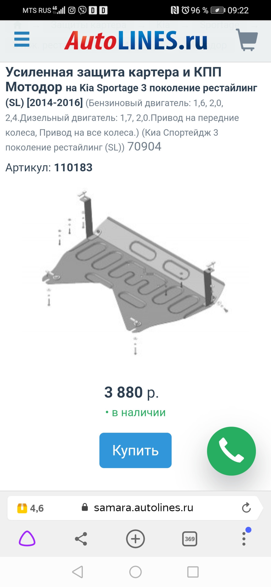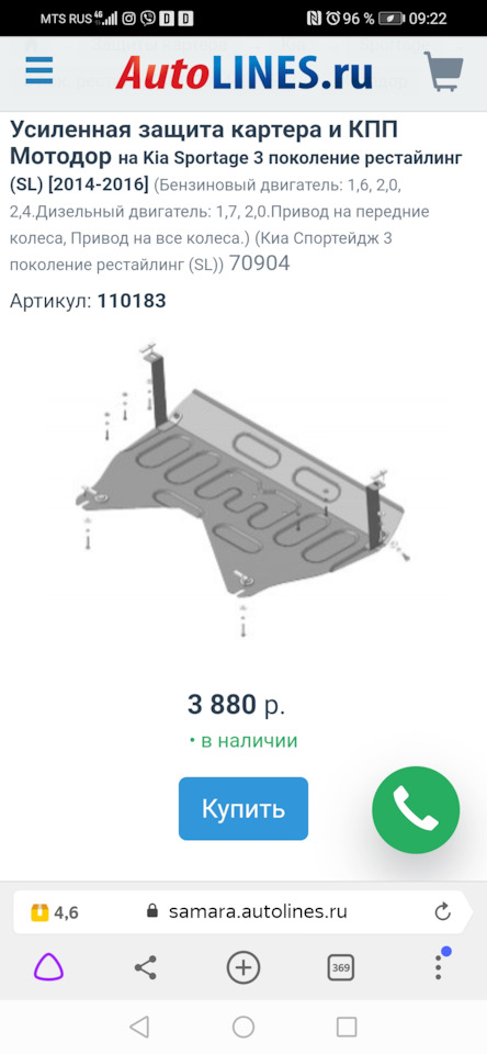Кстати, господа, данная защита имеет еще 1 оригинальный номер, по которому она стоит сильно дешевле :