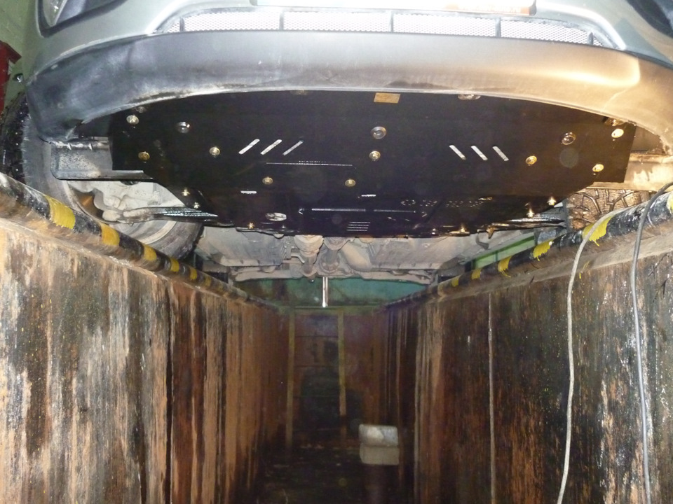 Блин у меня вообще ее нету, стоит пластиковая полимерная защита, крепче и легче металла, всем советую www.drive2.ru/l/566054425576079807/
