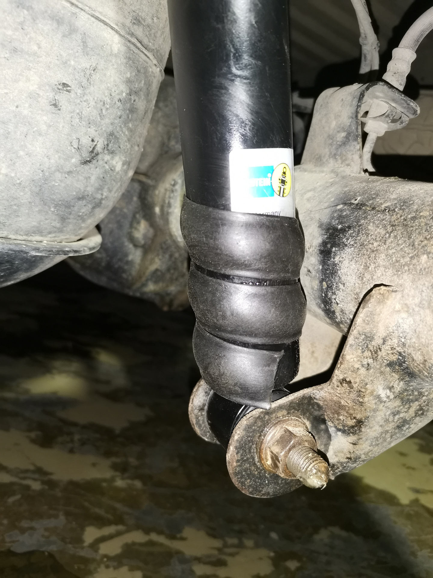 Касаемо защиты амортизаторов: на старых есть в низу накладки от камней, по каталогу они съёмные, но снять просто так я не смог, даже с молотком ). Сначала хотел надеть кусок подходящего по диаметру шланга, но такового не оказалось пришлось в хозяйстве поискать замену- гофру для укладки тросов д/у для катеров. Она из достаточно твердого пластика и завита в спираль подойдет для любого диаметра.
