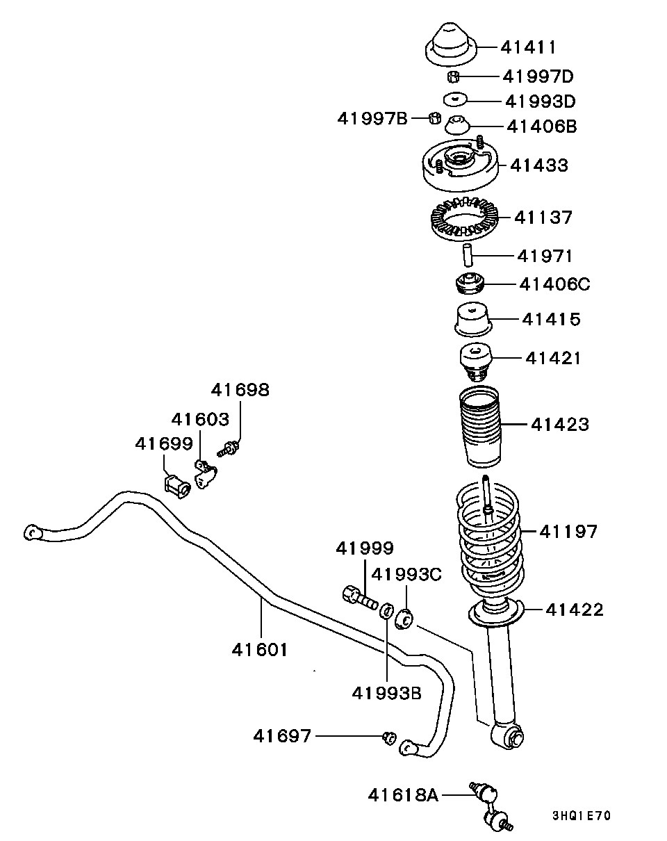 1. Задний амортизатор (позиция 41422) — MR491973. Качественные аналоги — KYB 341213, Monroe R3885.