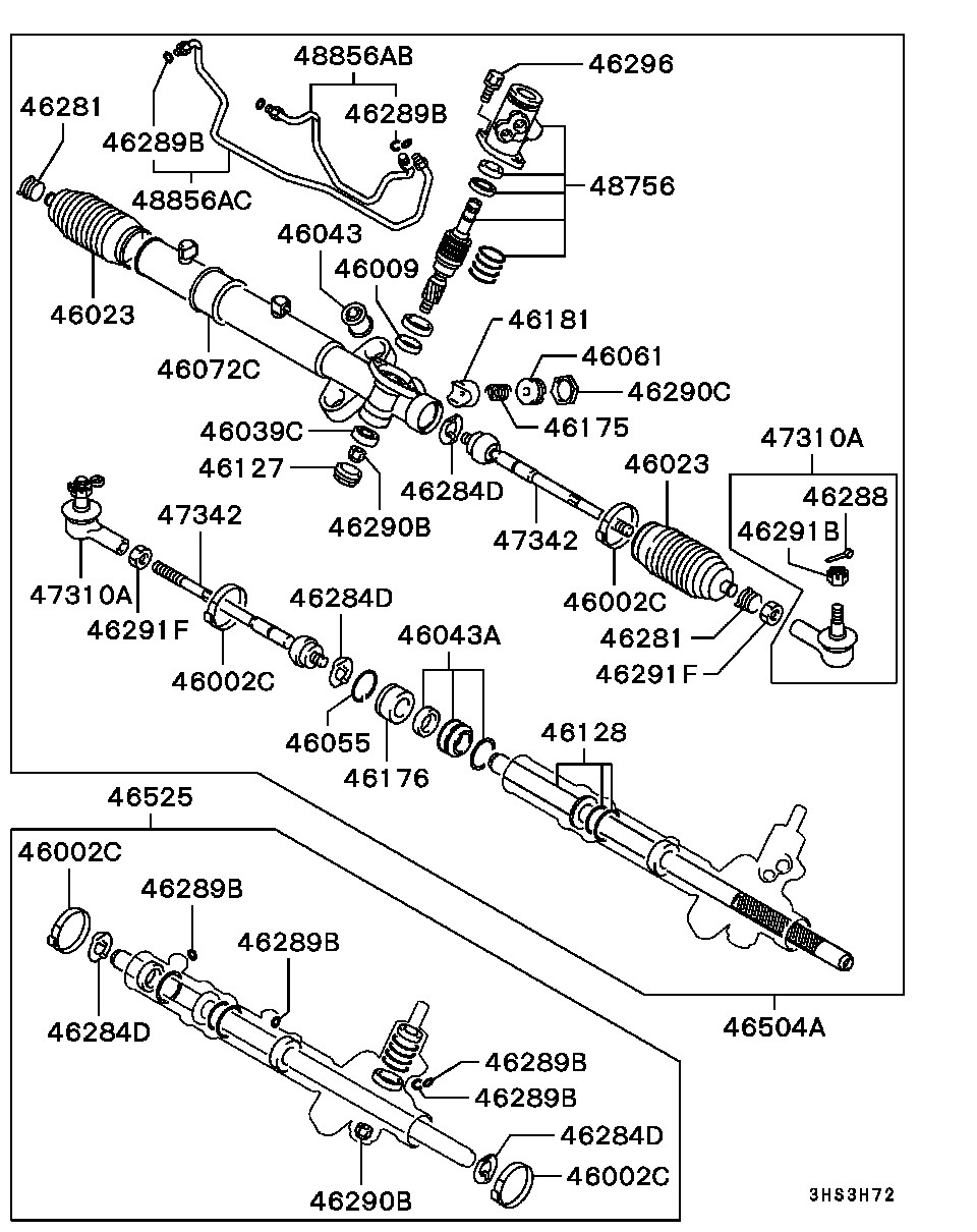 1. Наконечник рулевой тяги (позиция 47310A) — MR508650, CTR CEKH7 (CE0323), CEM49, CEM12 (CE0307), TRW JTE515. Также подходят наконечники от Hyundai с номером 5682037010 (ранее номер был 5682037000), аналоги TRW JTE229, CTR CEM12 (CE0307, ходят хорошо), Lemforder 3035701, 3035702