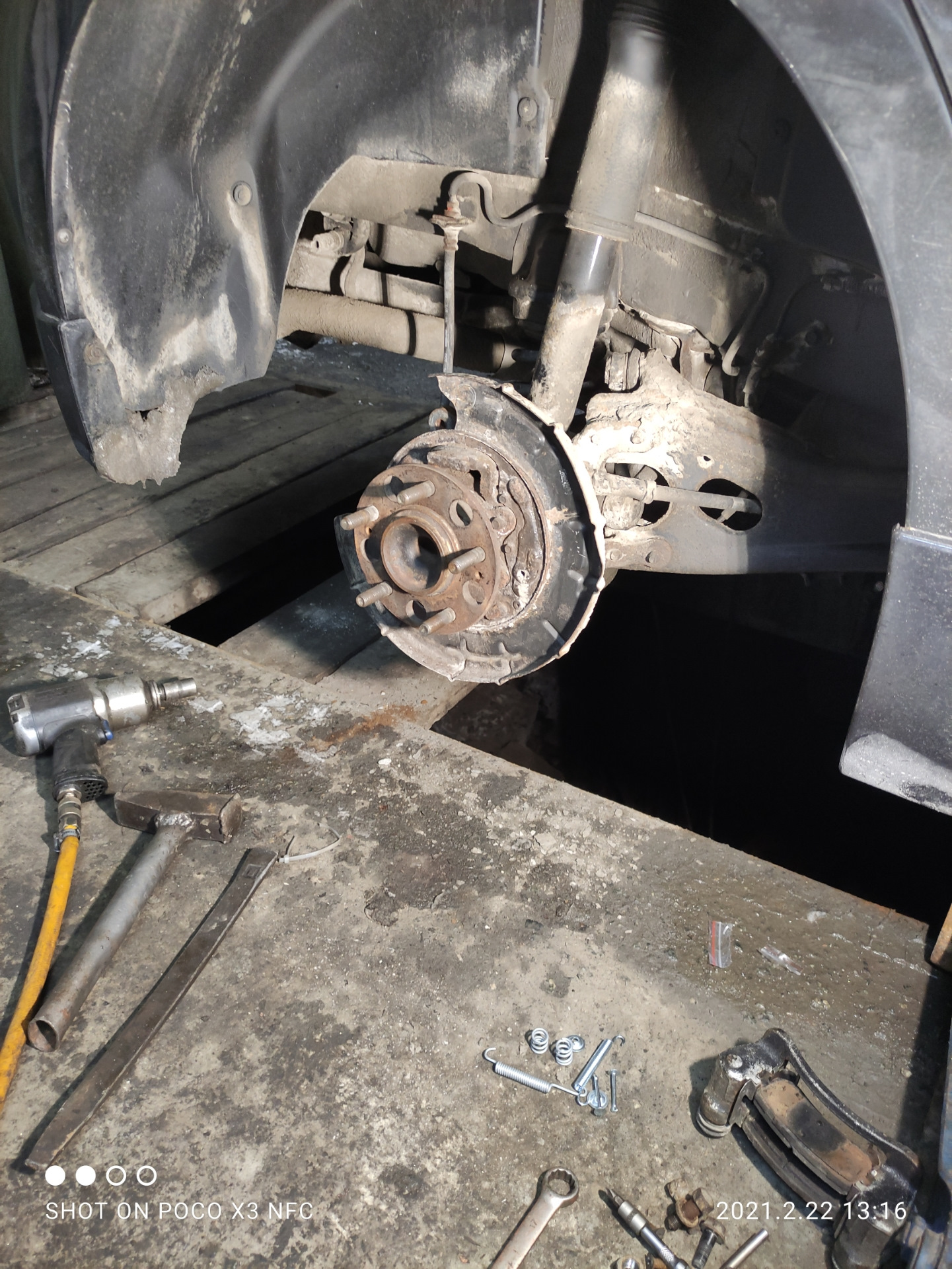 Также поменяли колодки ручника, т.к с правой стороны весь механизм заржавел и начинал подклинивать.