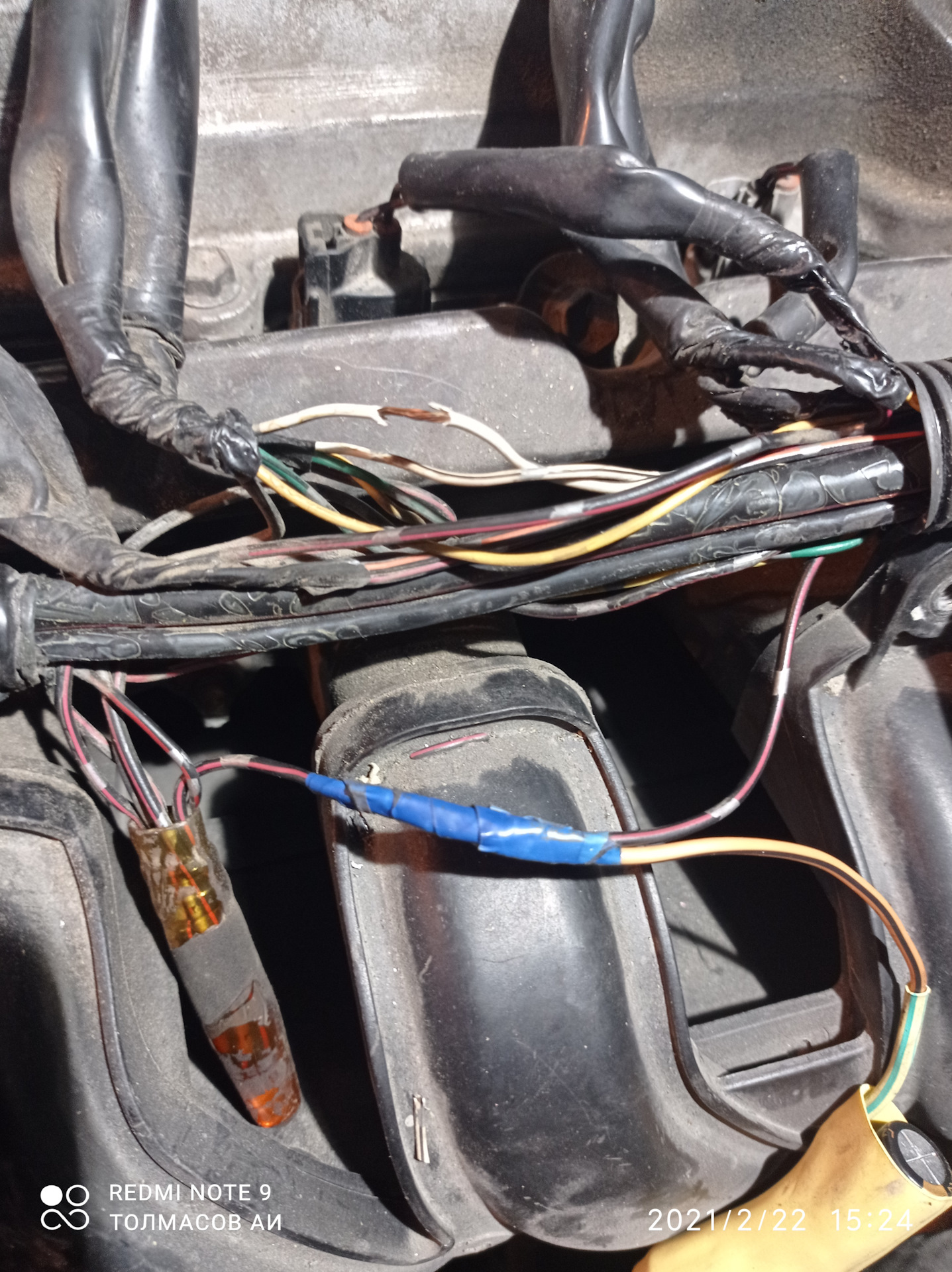 Кстати можно наверно было доп. конденсаторы установить вместо штатного. Который кстати не опознан. То есть его параметры я так в интернете и не нашел. Да бог с ним. Но. Там эти конденсаторы будут подвержены влаге, жаре и грязи. Под крышкой в изо ленте как то приятнее.