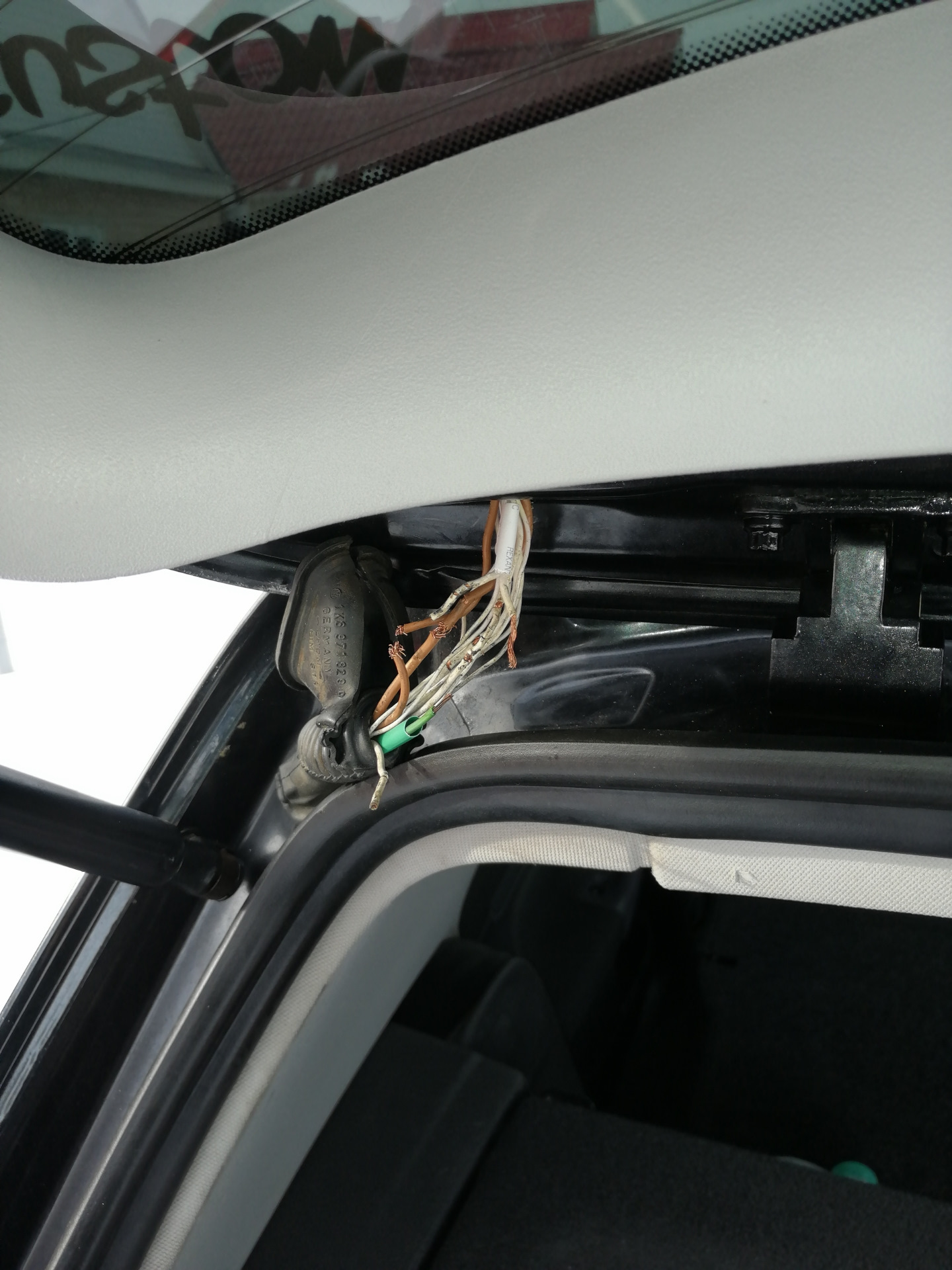Наступило утро. Мороз. Прекрасная погода. Завёл машину и тут ошибка по лампе. Пересмотрел все, доп стоп на двери. Ок, приеду гляну. Загрузил барахлигко в багажник поехал. Пришла пора выгрузить все и тут багажник сказал, точнее ничего не сказал и не открылся. Кое как потыркав резиновую гофру и открывая багажник удалось открыть. Думаю ну точно провода перкломило. Приехав домой начал разбирать, вскрыл и все стало понятно. 3 провода перебиты, два на соплях. Перепаял все что было, укрыв термоусадкой и чёрной изоленты все было сделано. В итоге все заработало как и следует.