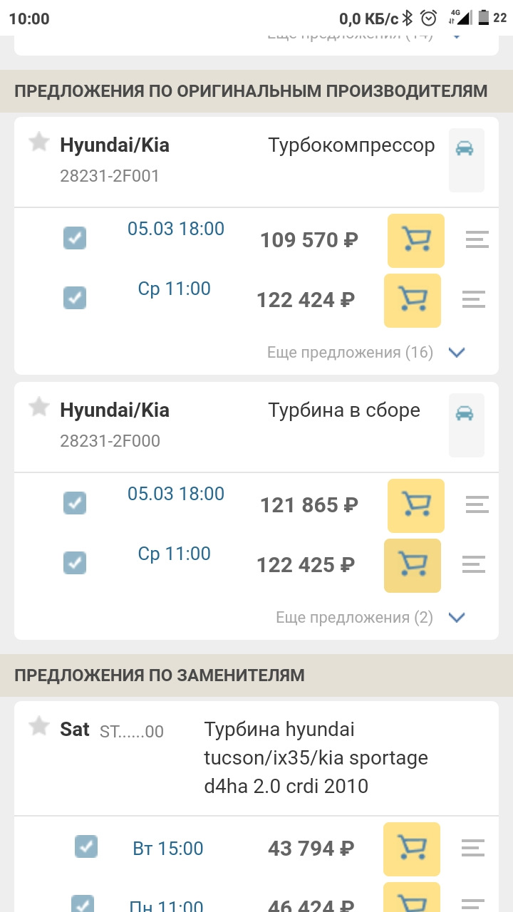 Кстати цена оригинальной турбины на экзисте или автодоке в районе 110т.р. Вот так.