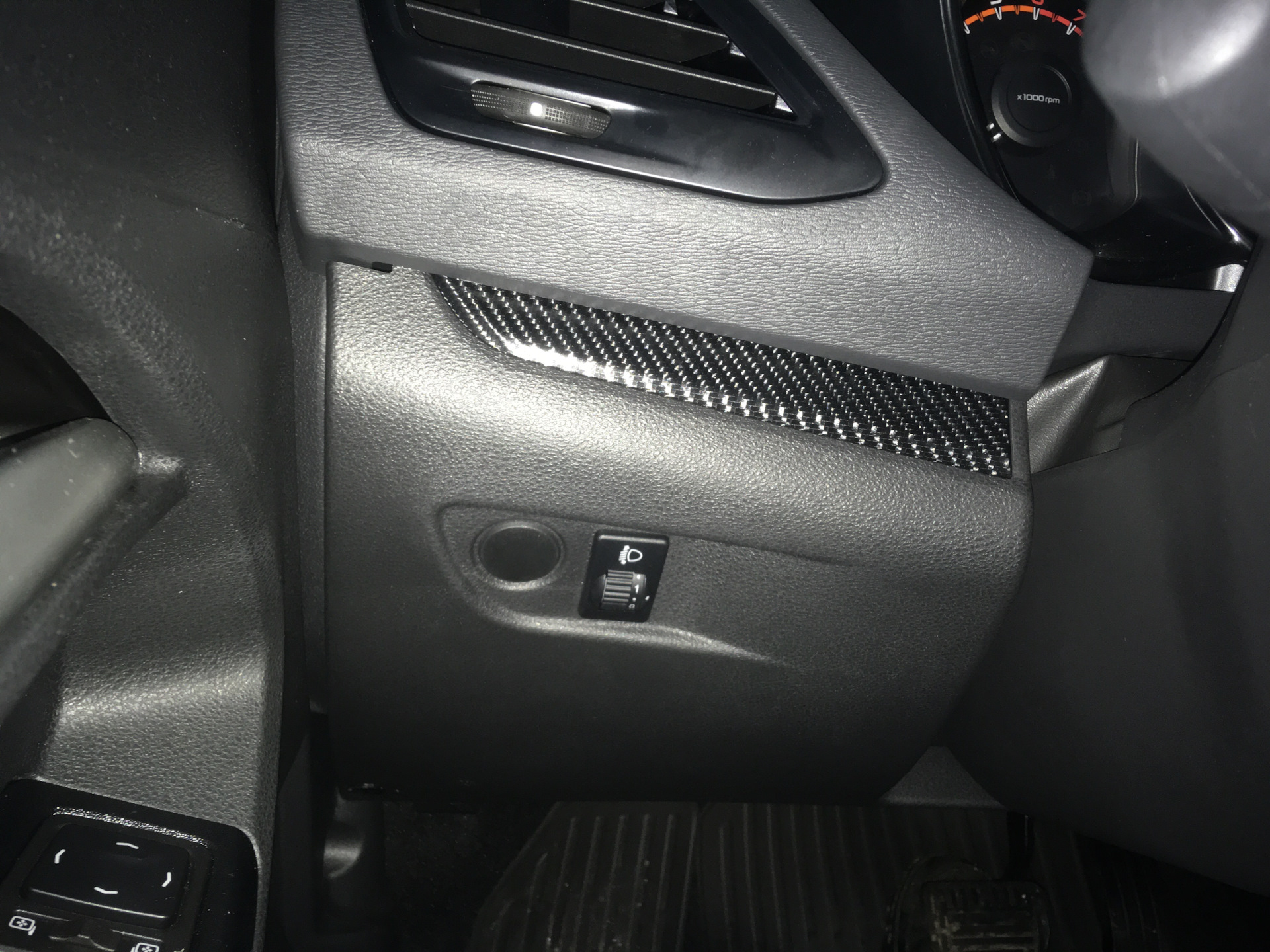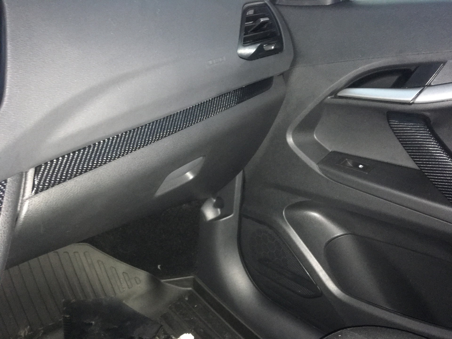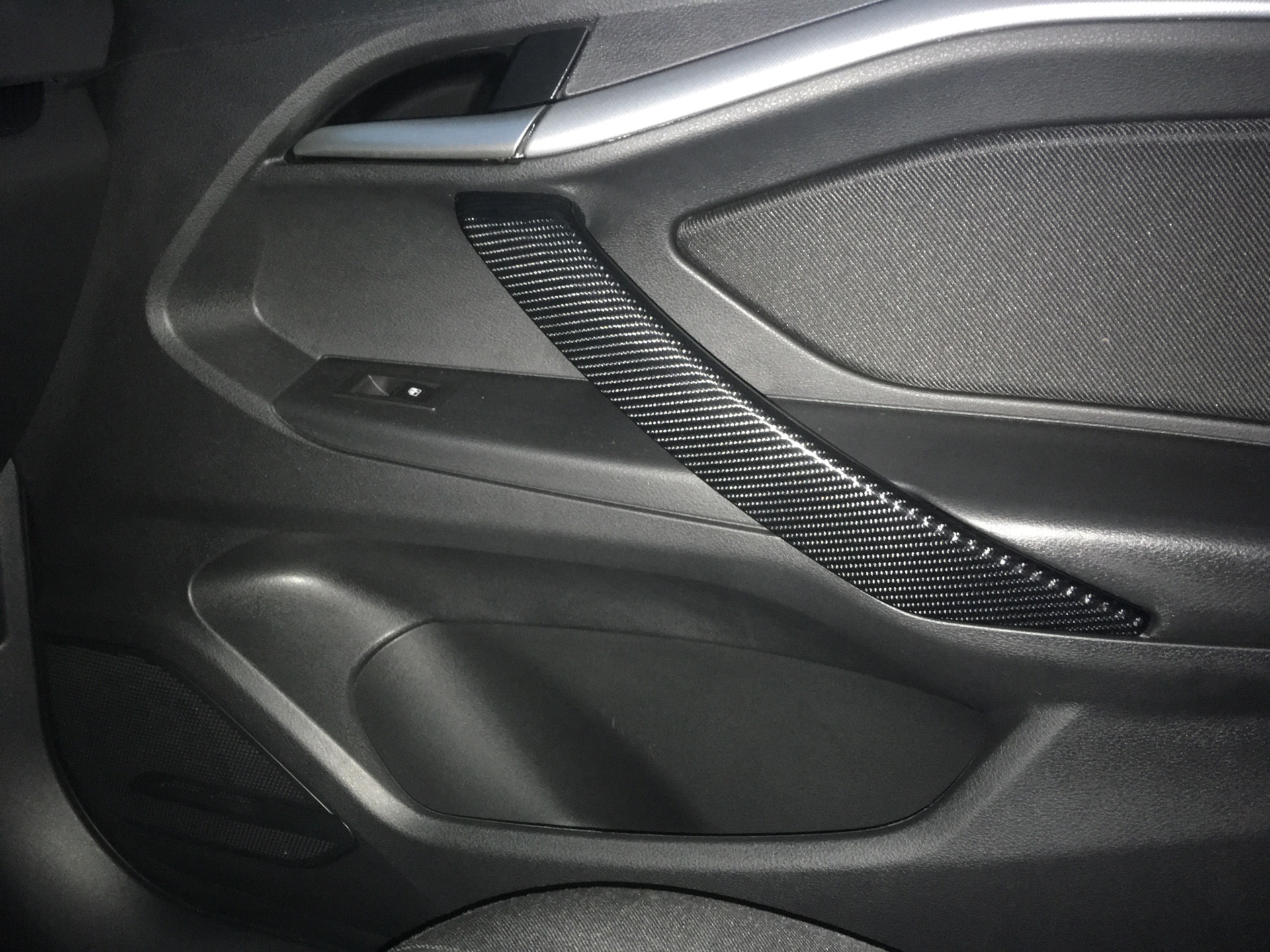 Я заклеивал все вставки серого цвета в машине в карбон. Ручки дверей не стал